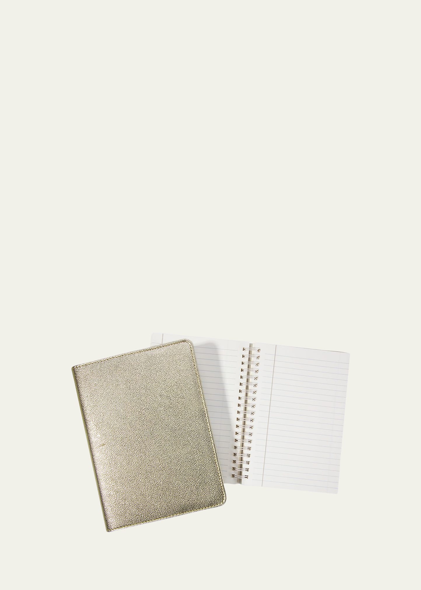 • Leather notebook with wire spine.