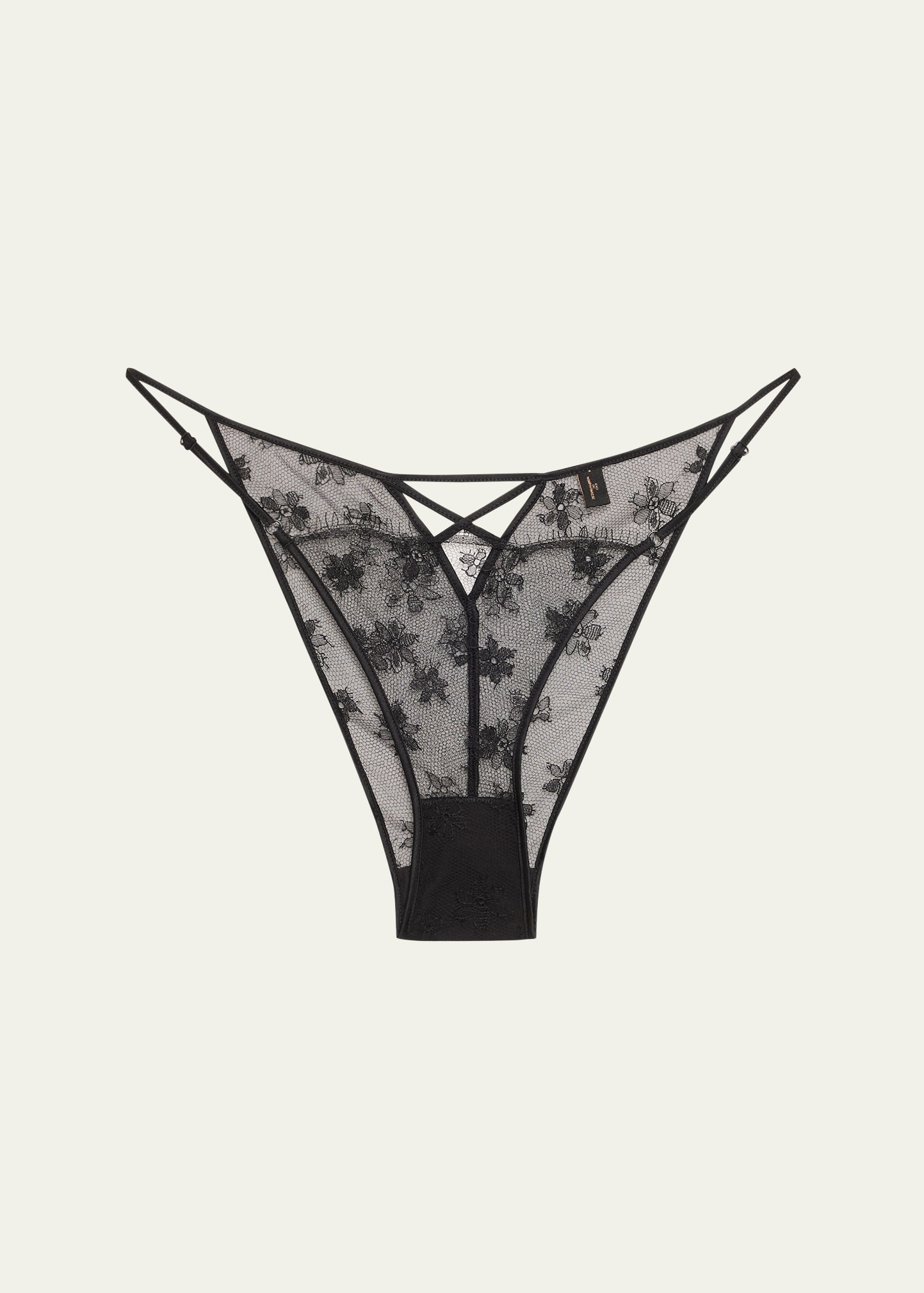 • Kiki De Montparnasse "All Over Lace" briefs crafted in sheer floral French lace and finished with silk stretch charmeuse trim