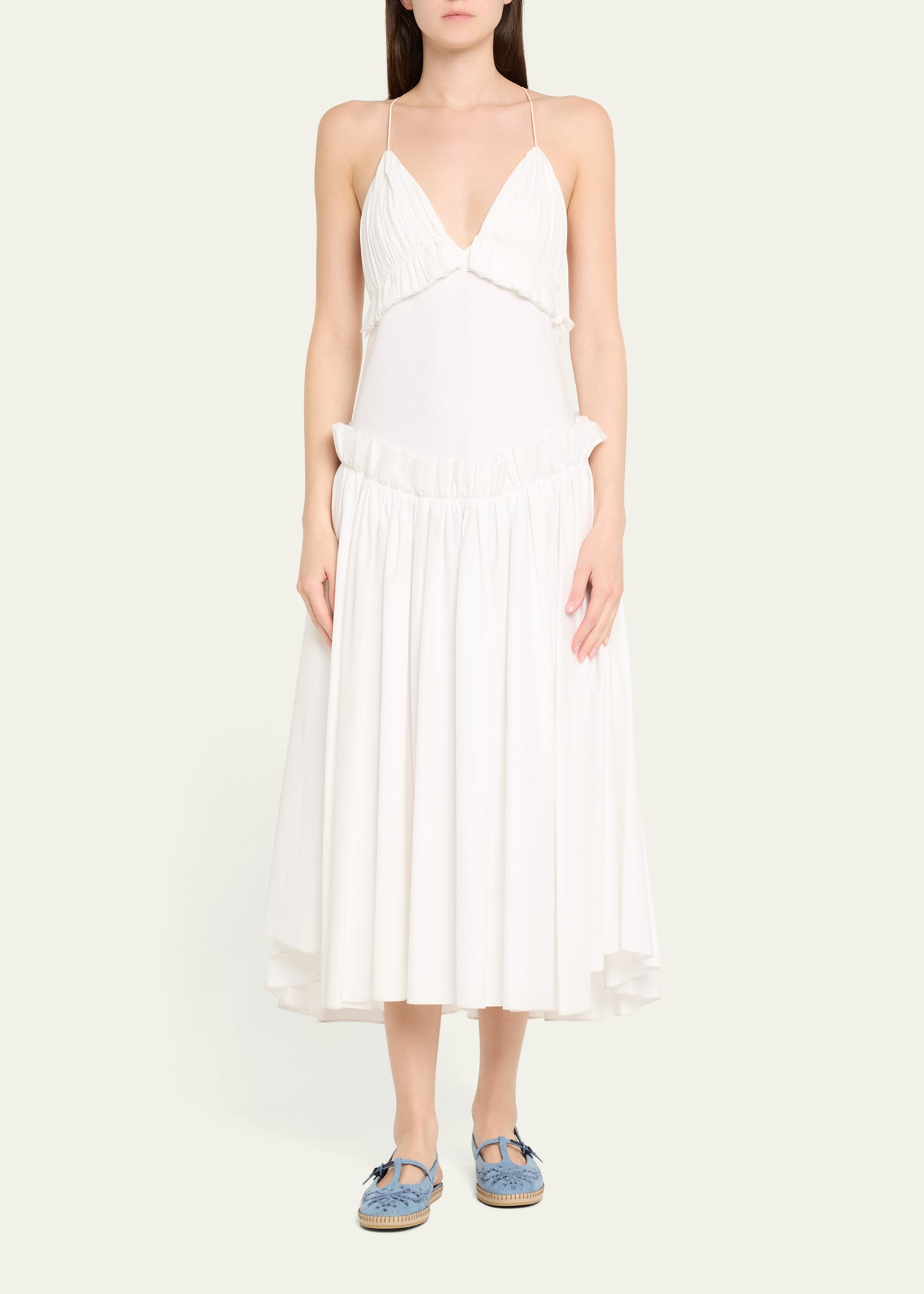How much does the Jimmy Choo Amiee Denim Embroidered Espadrille Ballerina Flats cost?