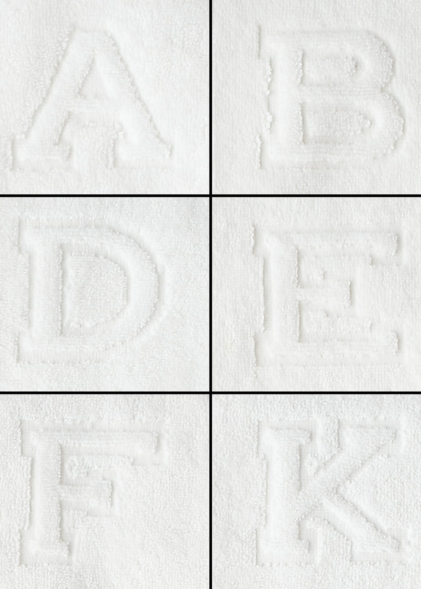 Auberge offers a simple yet striking alternative to monogramming, carefully crafting an uppercase letter in bold relief on soft, long-staple cotton terry towels. The collection completes a welcoming guest bath in style or makes a thoughtful gift for a new home.