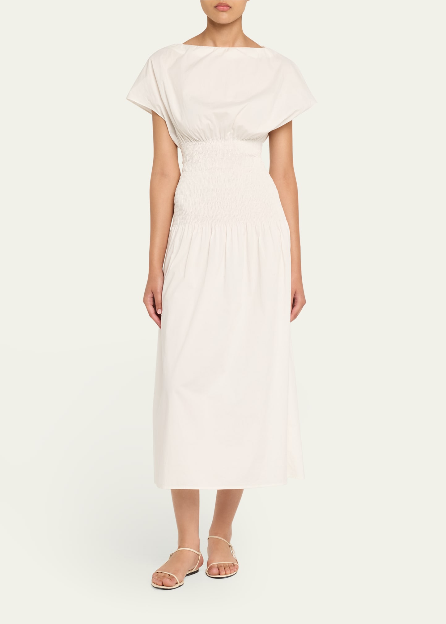 Anna Quan Ava Short-Sleeve Smocked Midi Dress