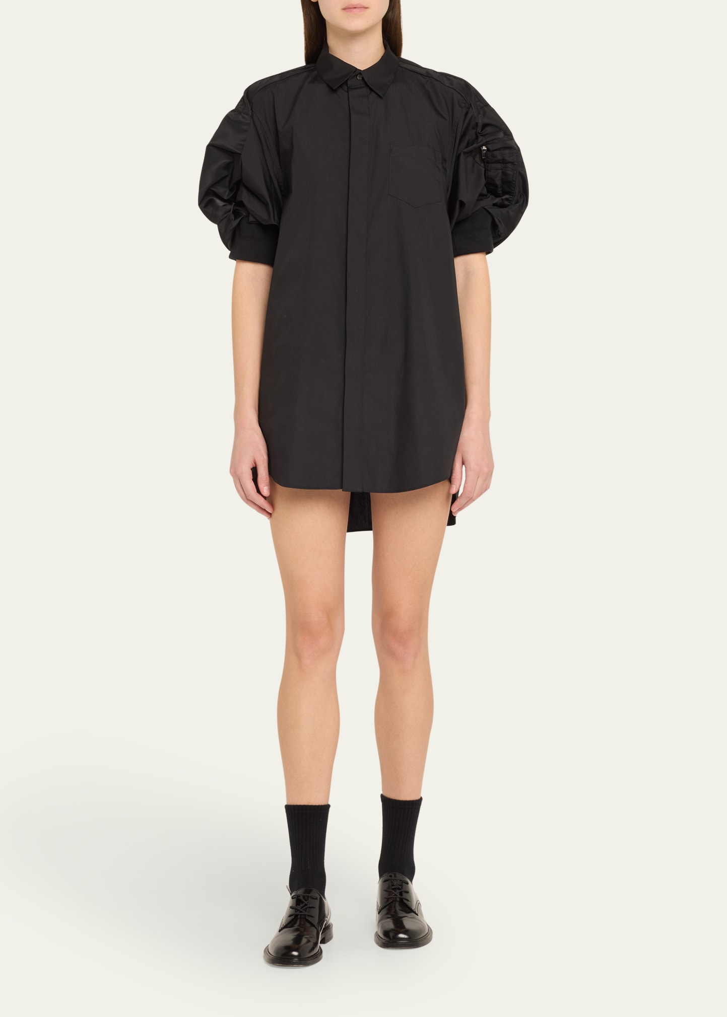 What is the Sacai Cargo Sleeve Poplin Mini Shirt Dress price?