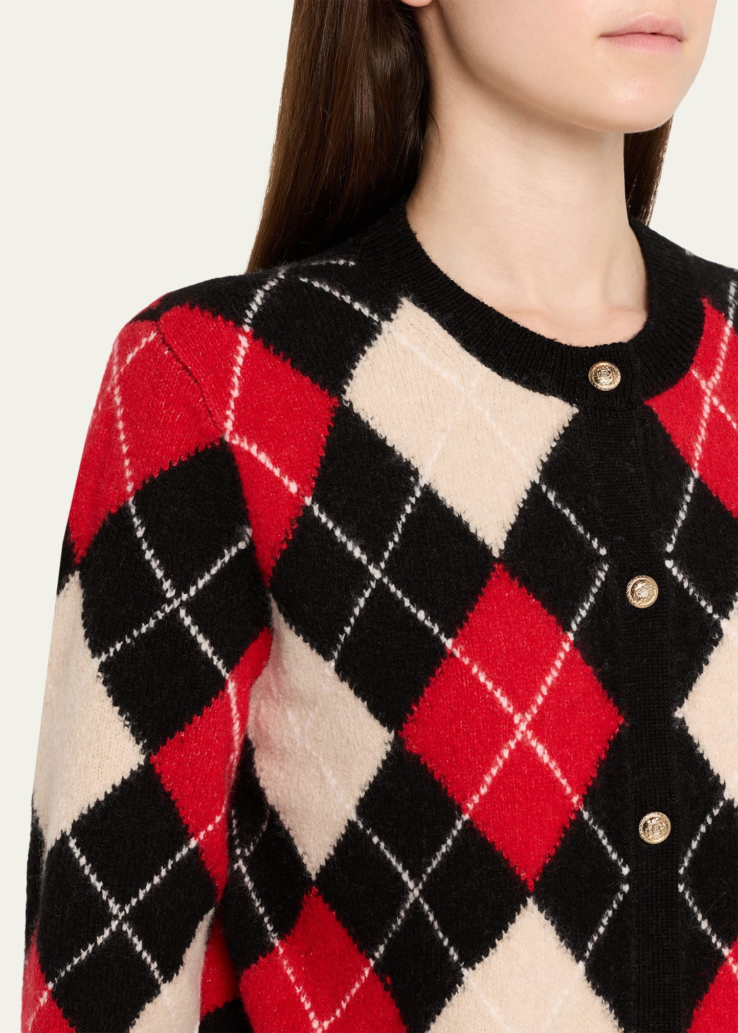 How to buy the Alice + Olivia Carolee Argyle Crewneck Cardigan from the USA?