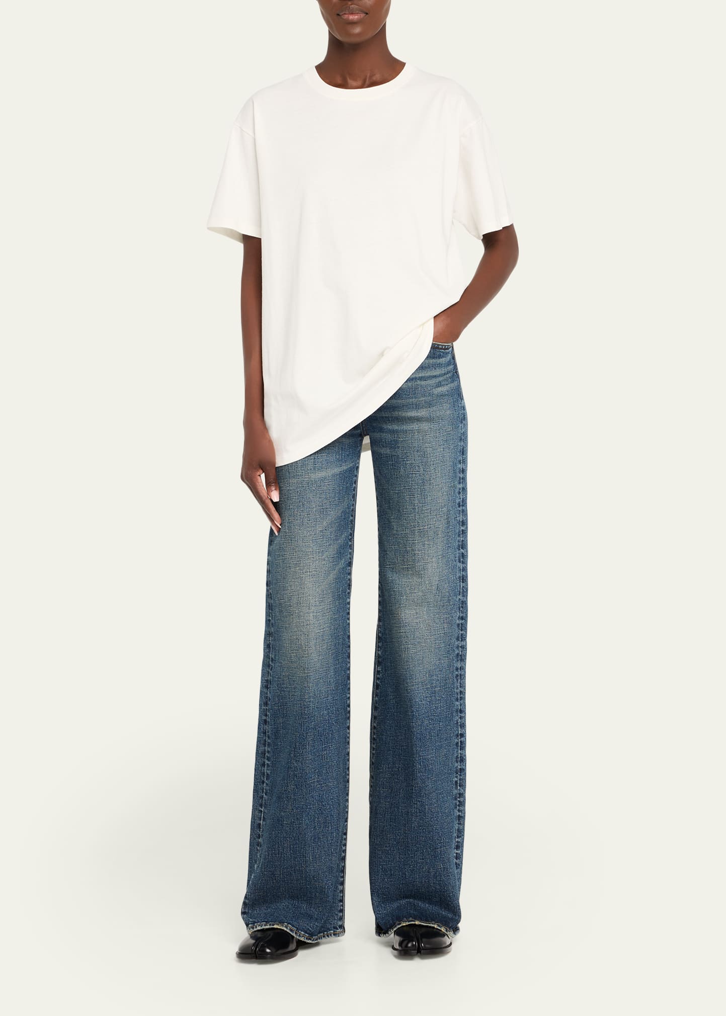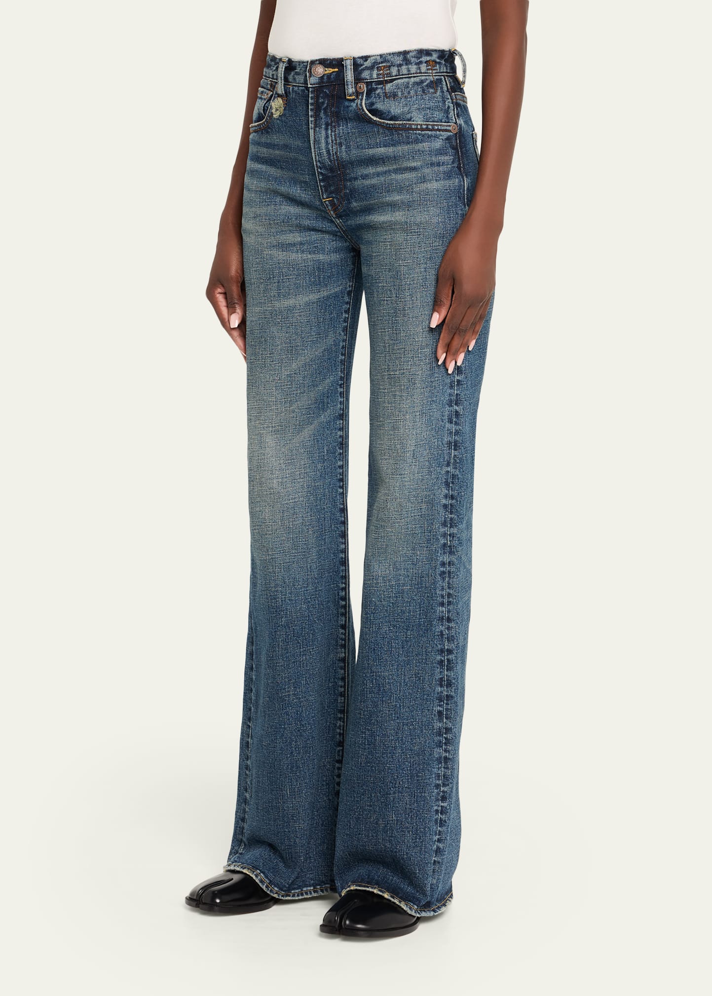 • R13 "Charlotte" jeans in faded medium-wash comfort-stretch denim
