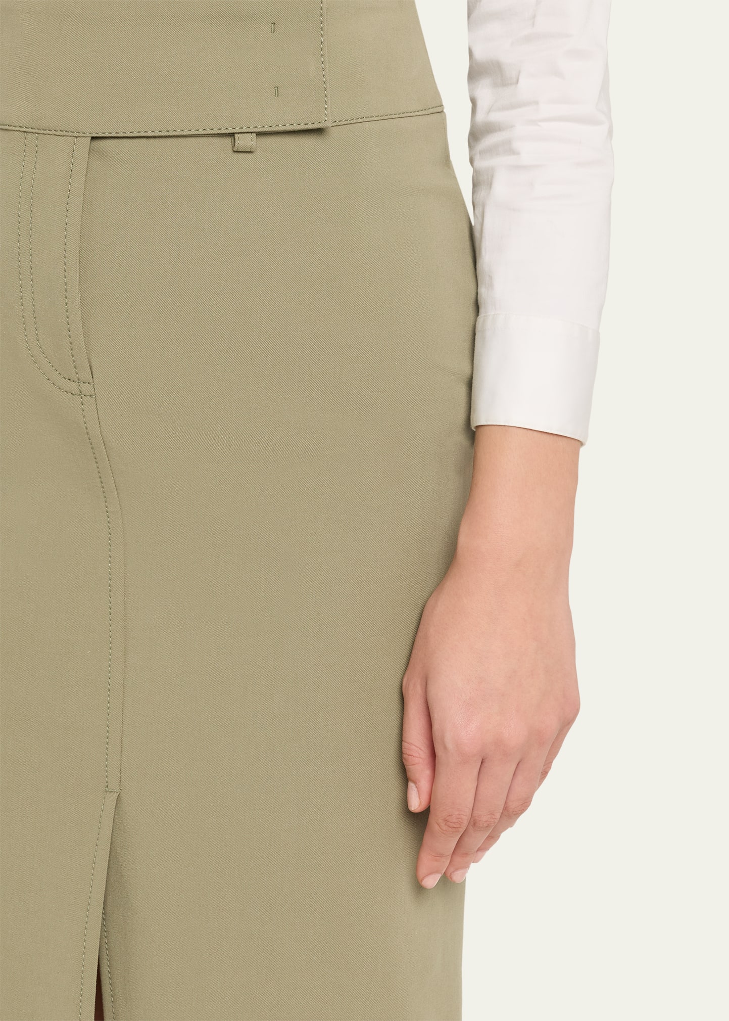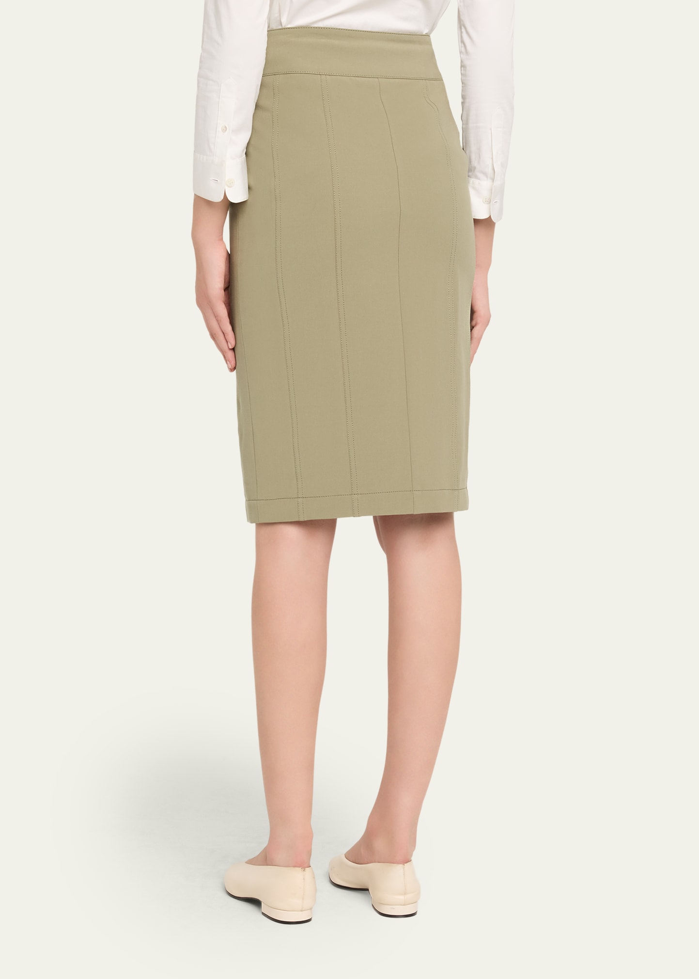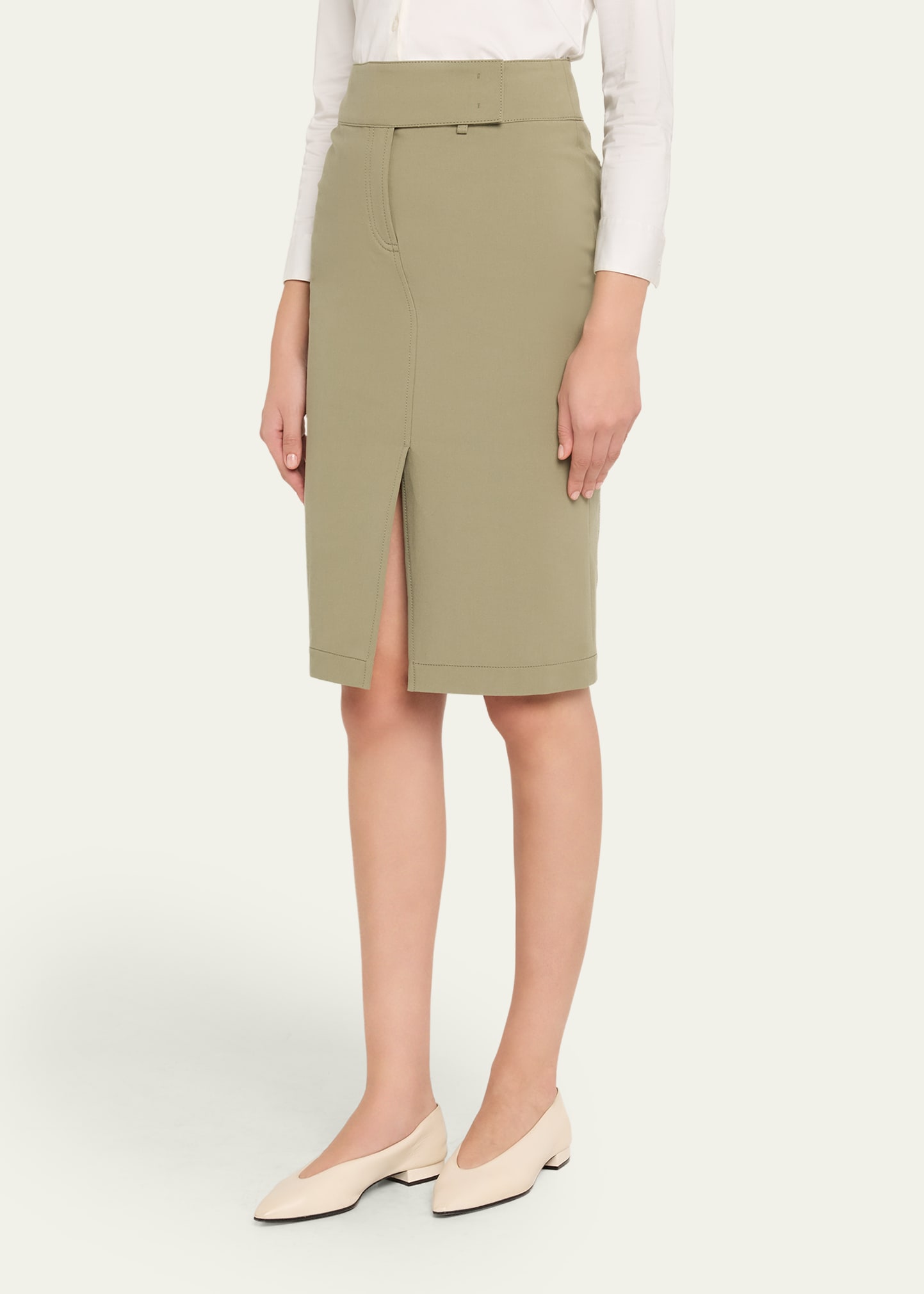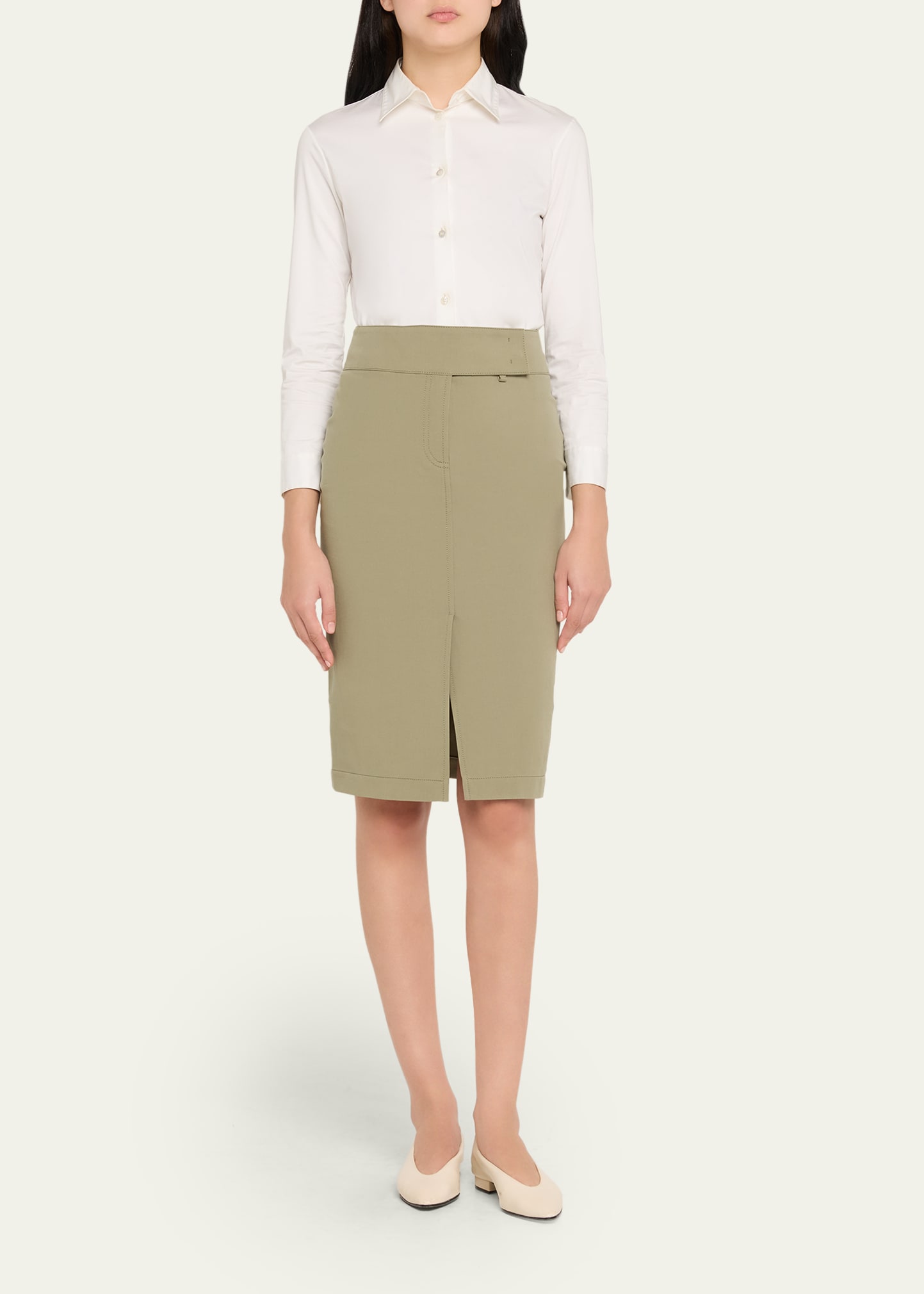 • Akris punto cotton bi-stretch skirt featuring a front slit hem