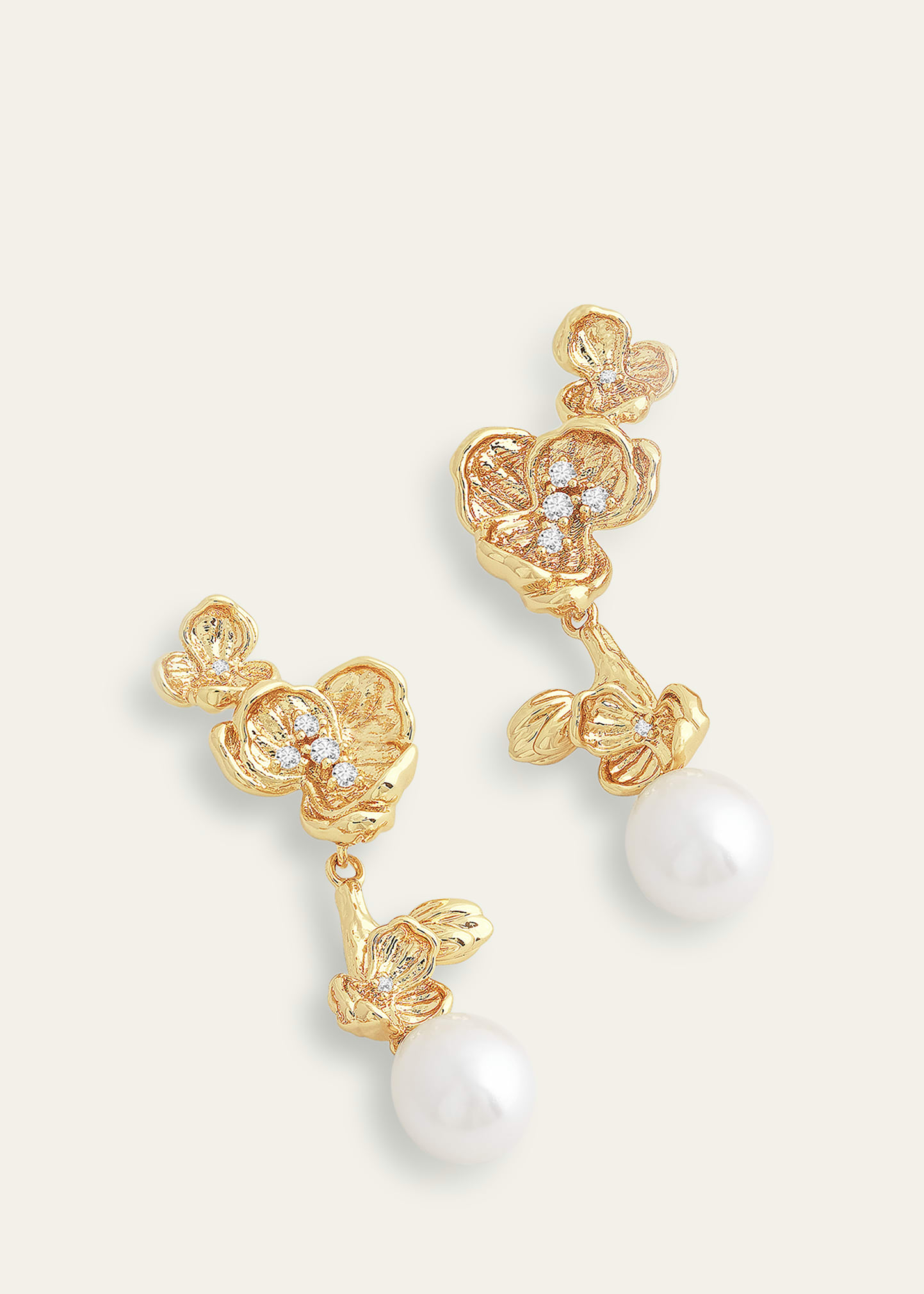 Anabel Aram Jewelry Cubic Zirconia Orchid Pearl Drop Earrings