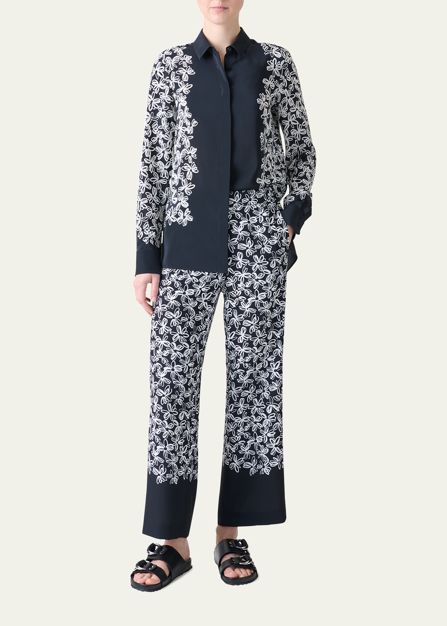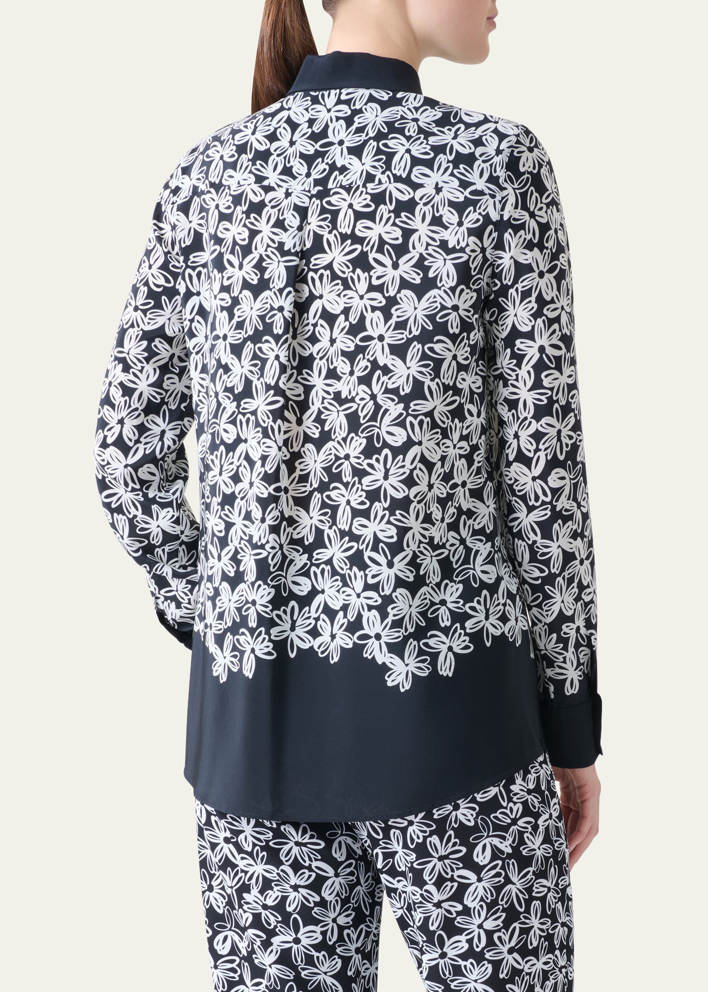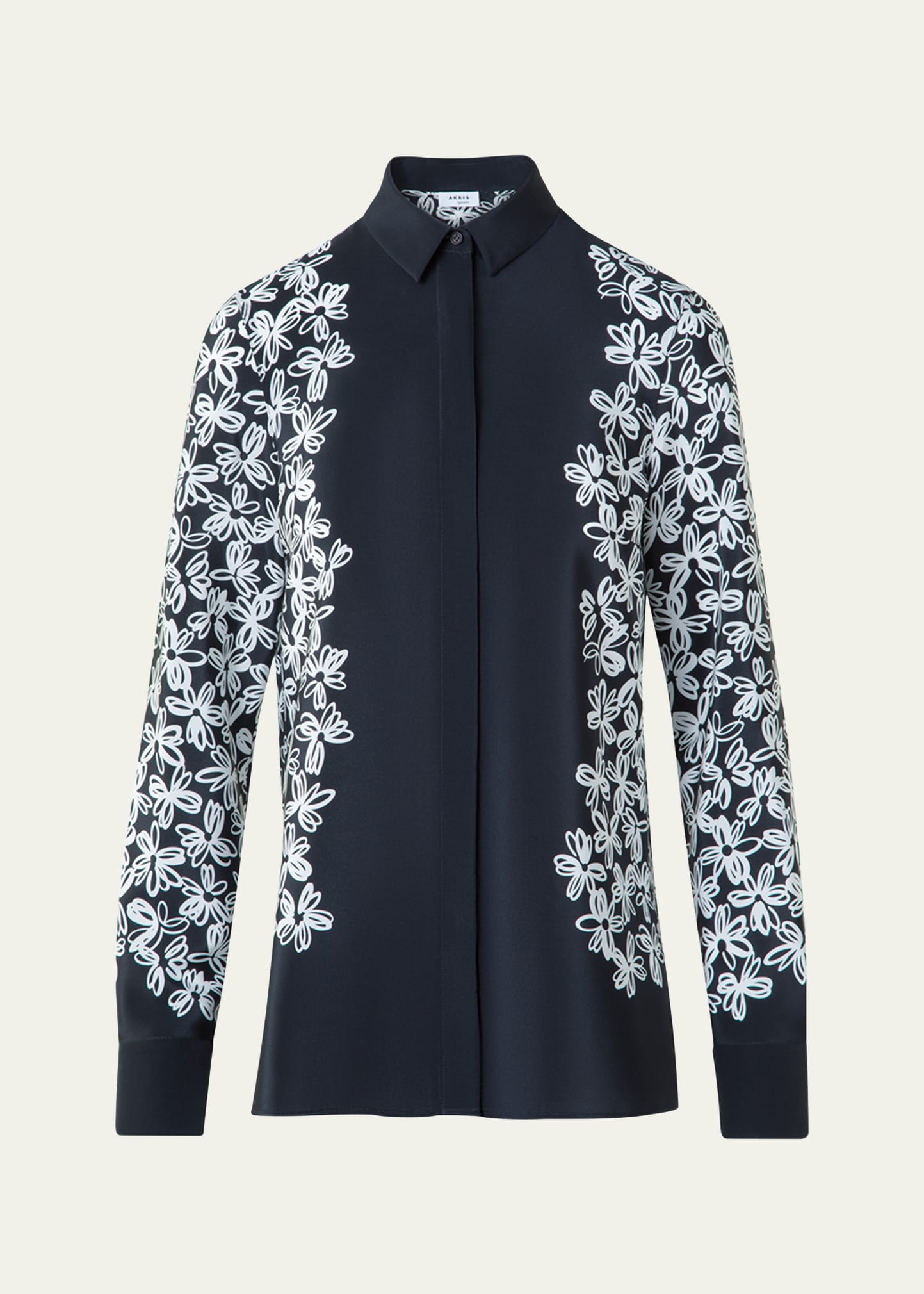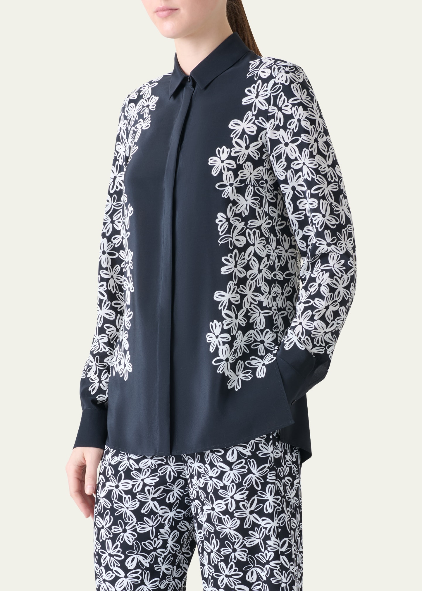 Akris punto Daisy Print Button Down Silk Blouse