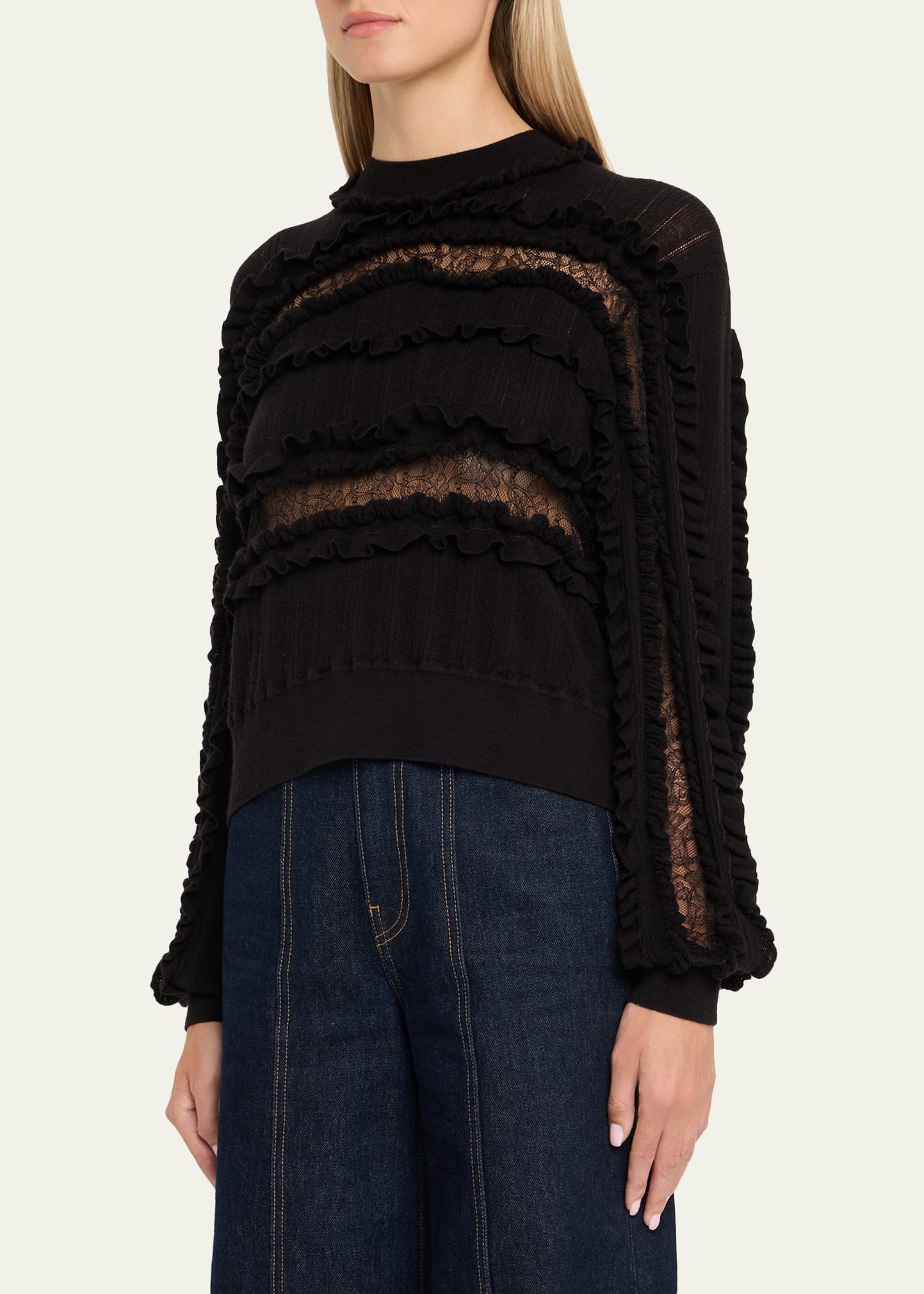 • Ulla Johnson "Demma" fine merino-knit sweater elevated with ruffle details