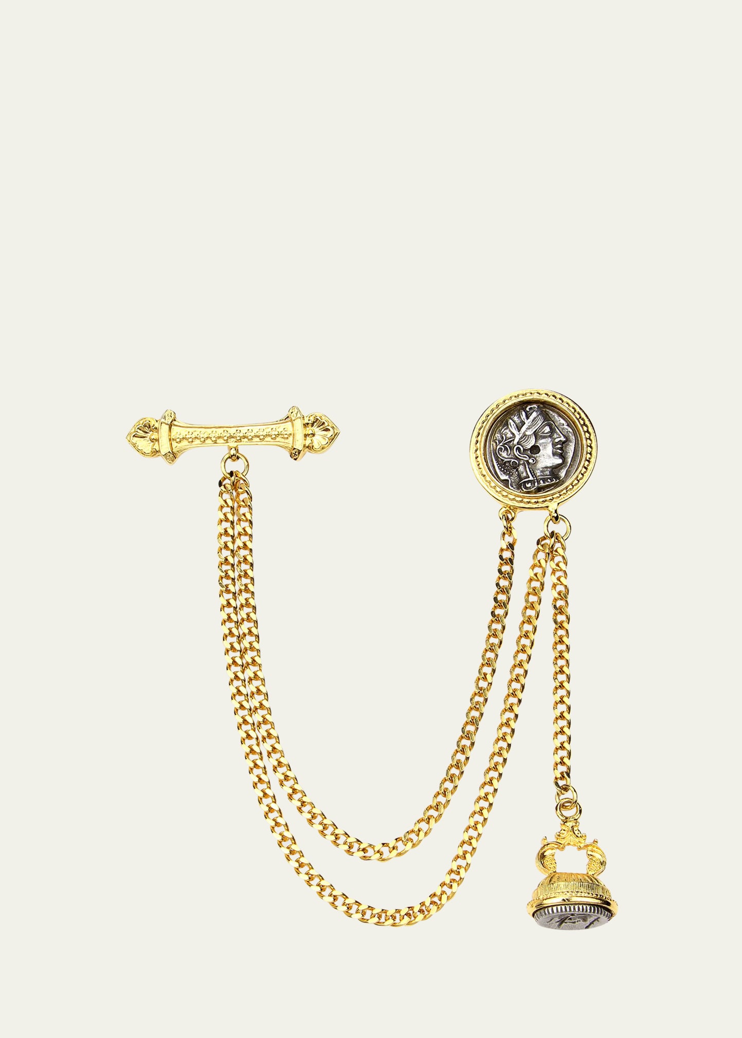 • Ben-Amun double-chain coin brooch.