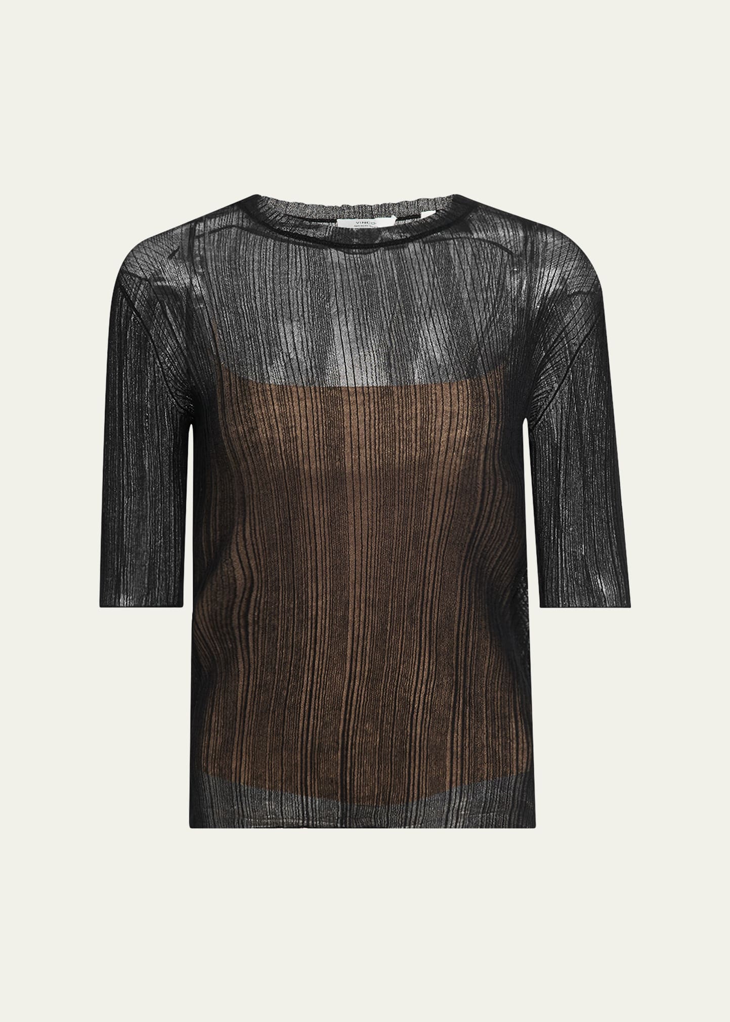 Vince Double-Layered Ribbed Elbow-Sleeve Top