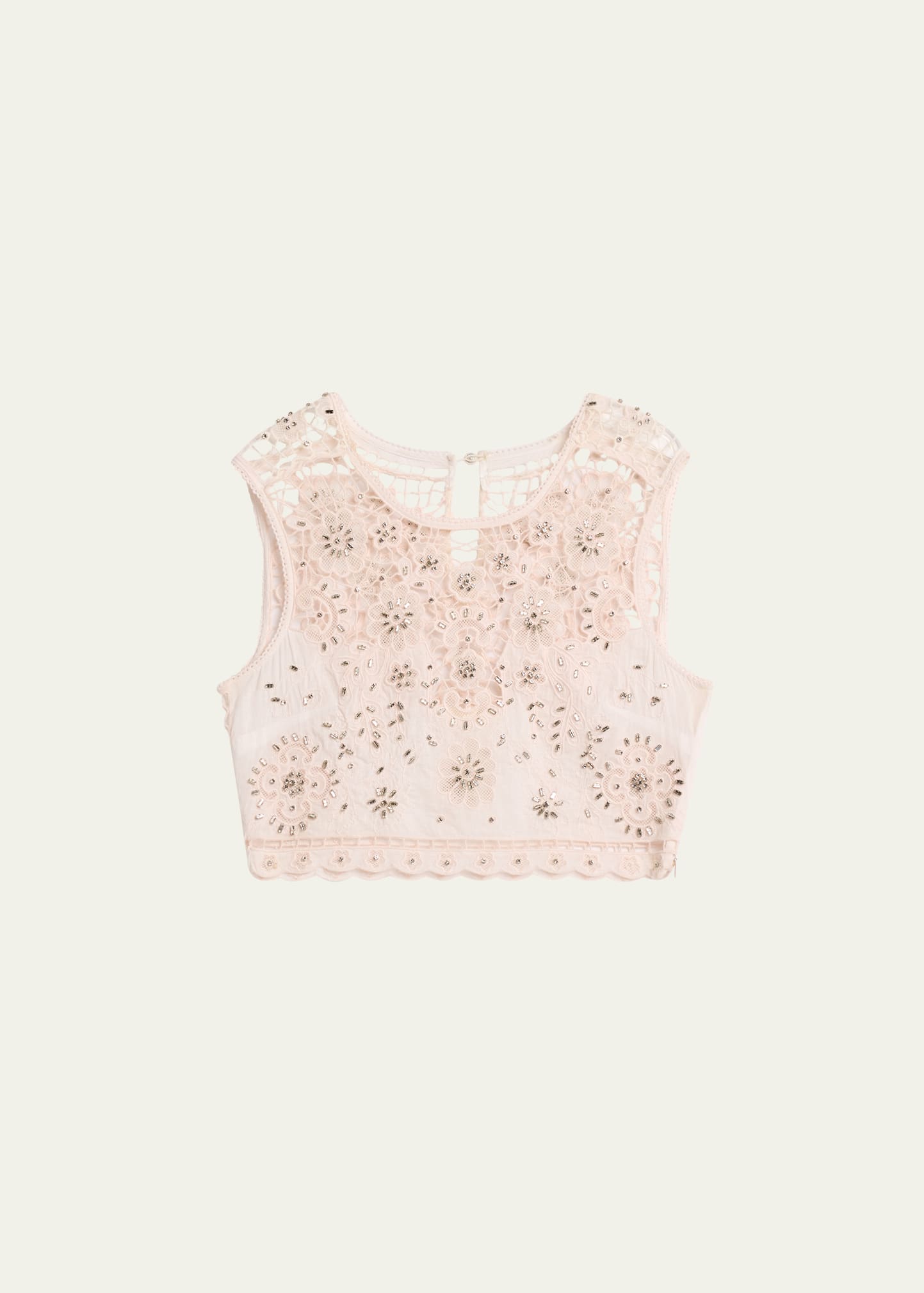• LoveShackFancy "Emeryn" top constructed of floral embroidery with metal crystal embellishments