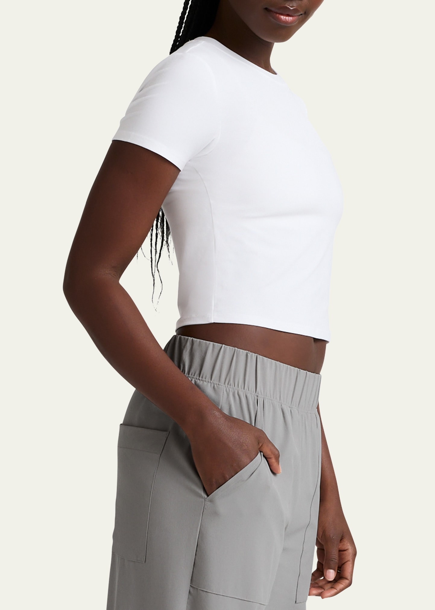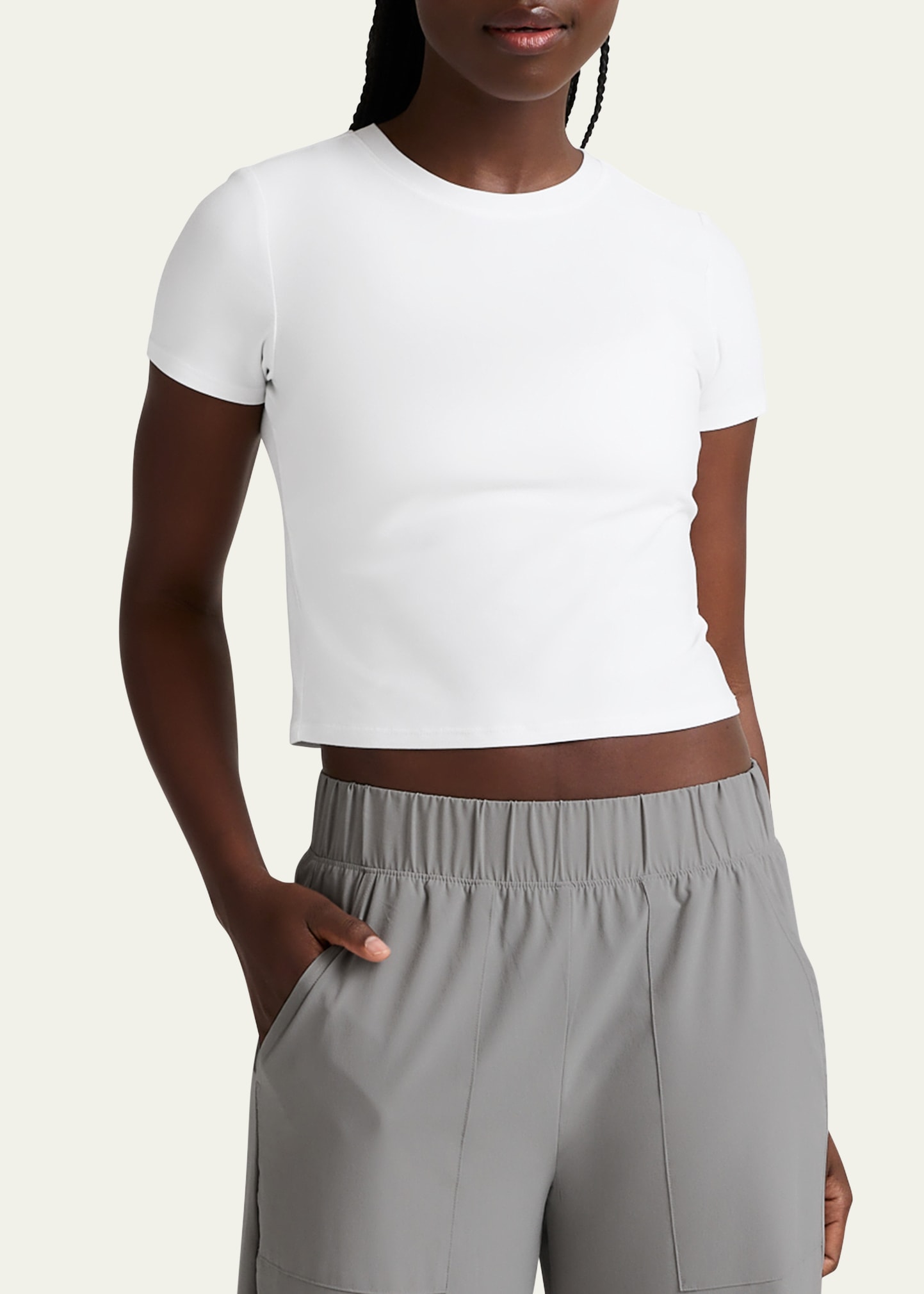 • Beyond Yoga baby tee in signature Featherweight fabric offering an ultra soft hand with four-way stretch and moisture-wicking properties