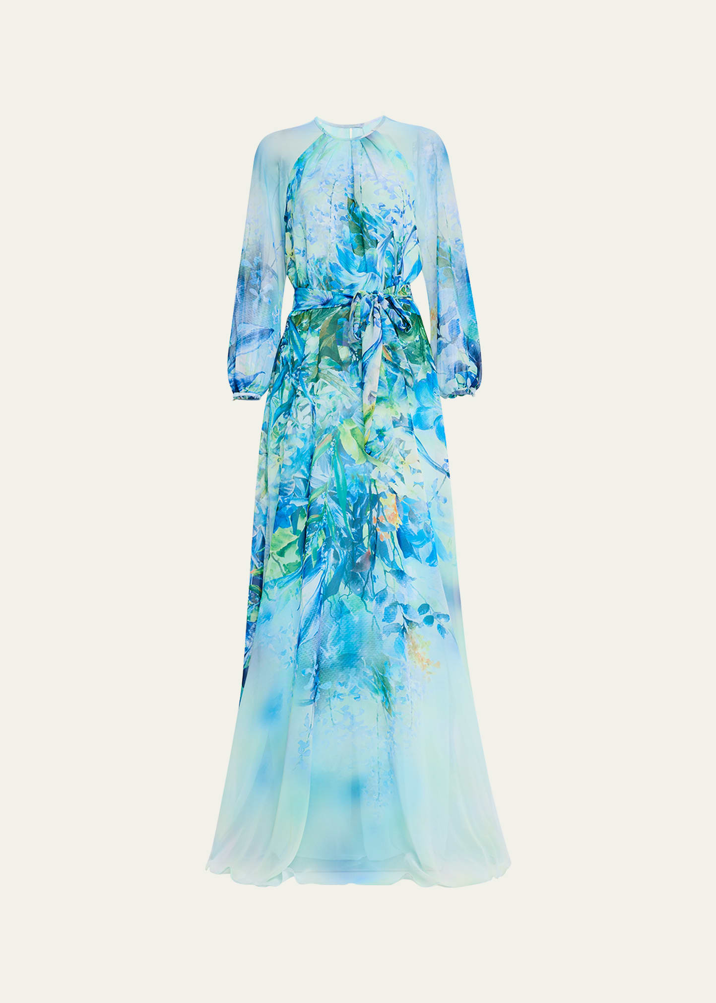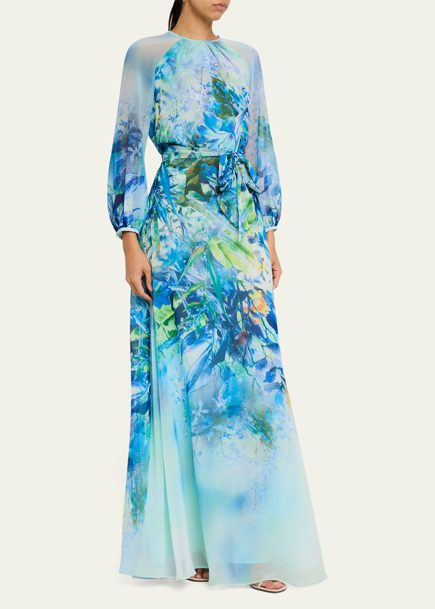 Rickie Freeman for Teri Jon Floral-Print Chiffon Gown