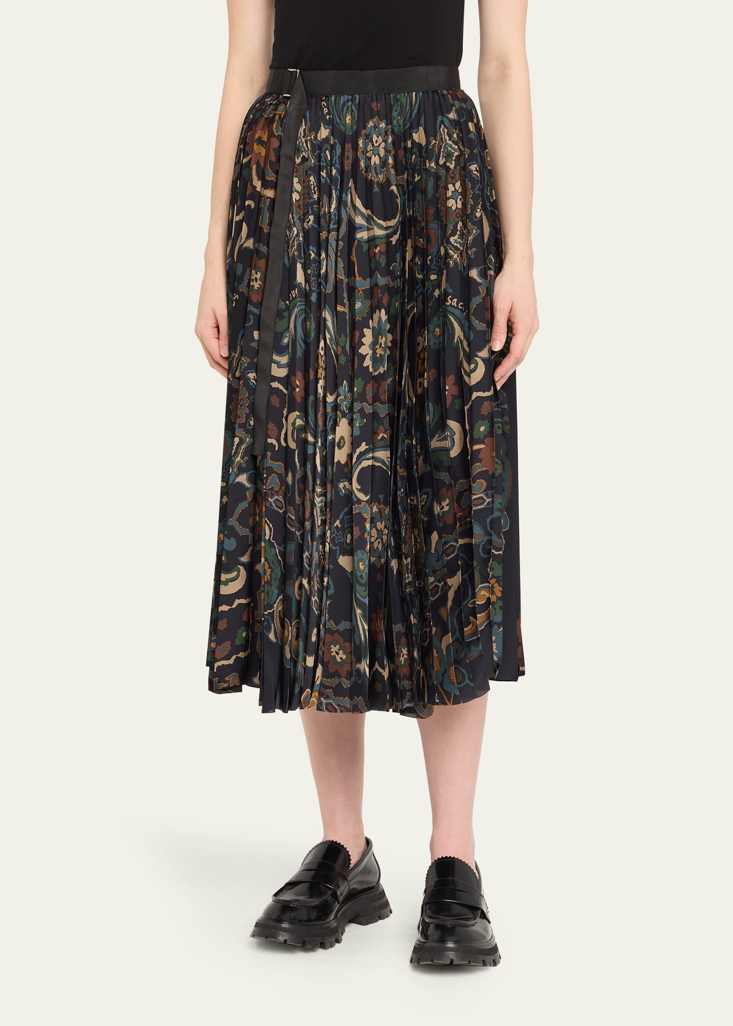 What is the Sacai Floral Print Pleated Midi Skirt price?