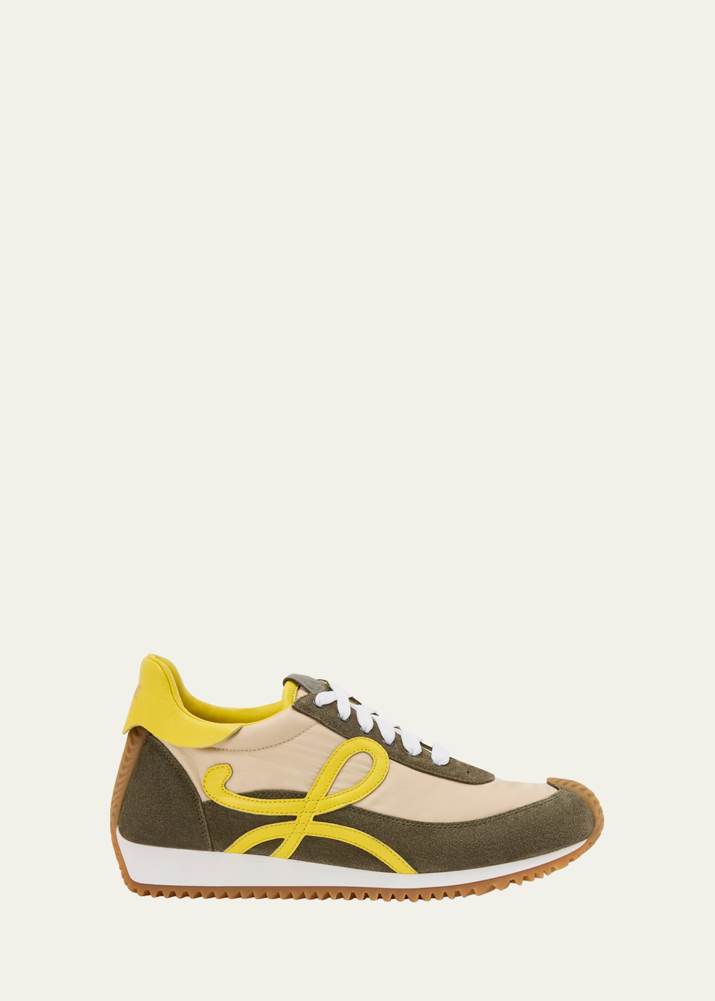 • Loewe "Flow" retro runner sneakers in colorblocked fabric, suede and leather