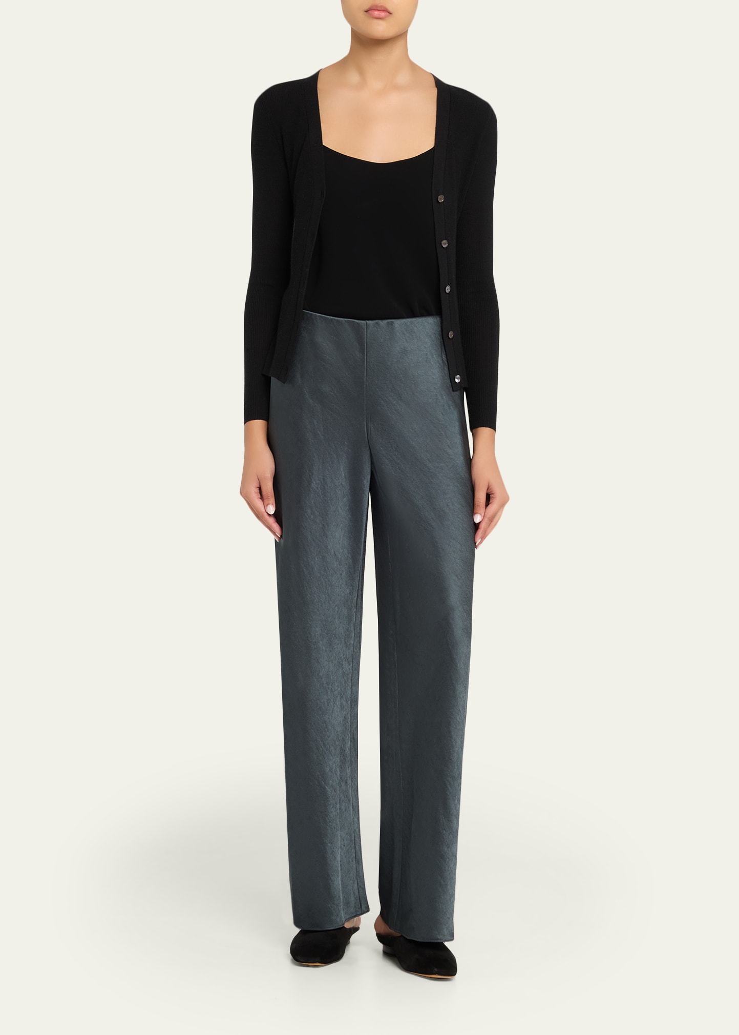 • Vince satin pants cut on the bias for fluid movement
