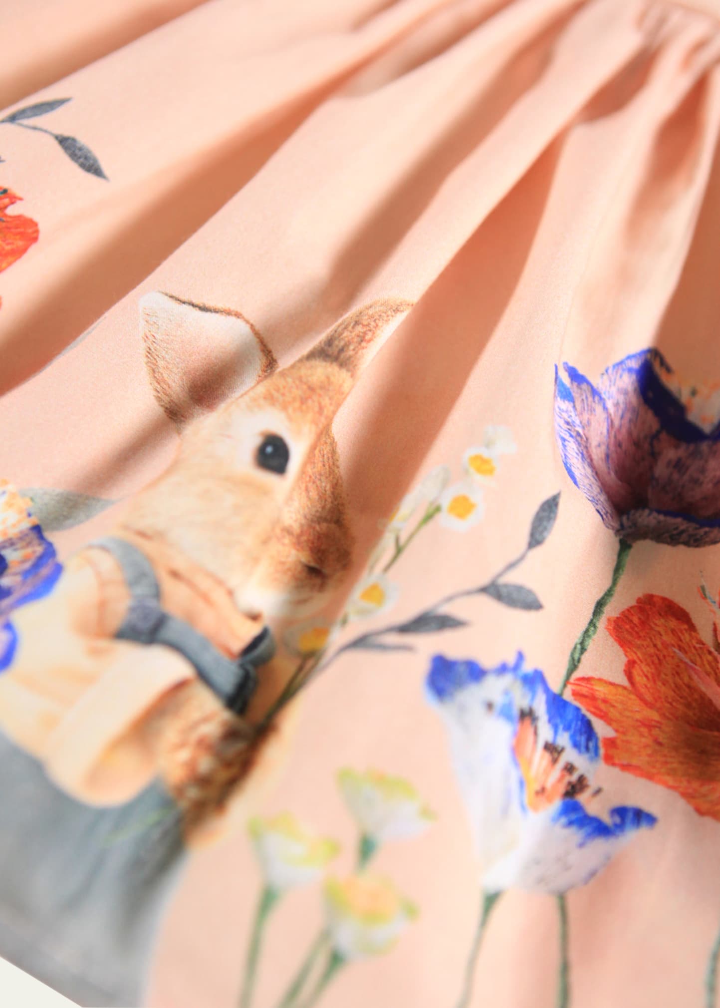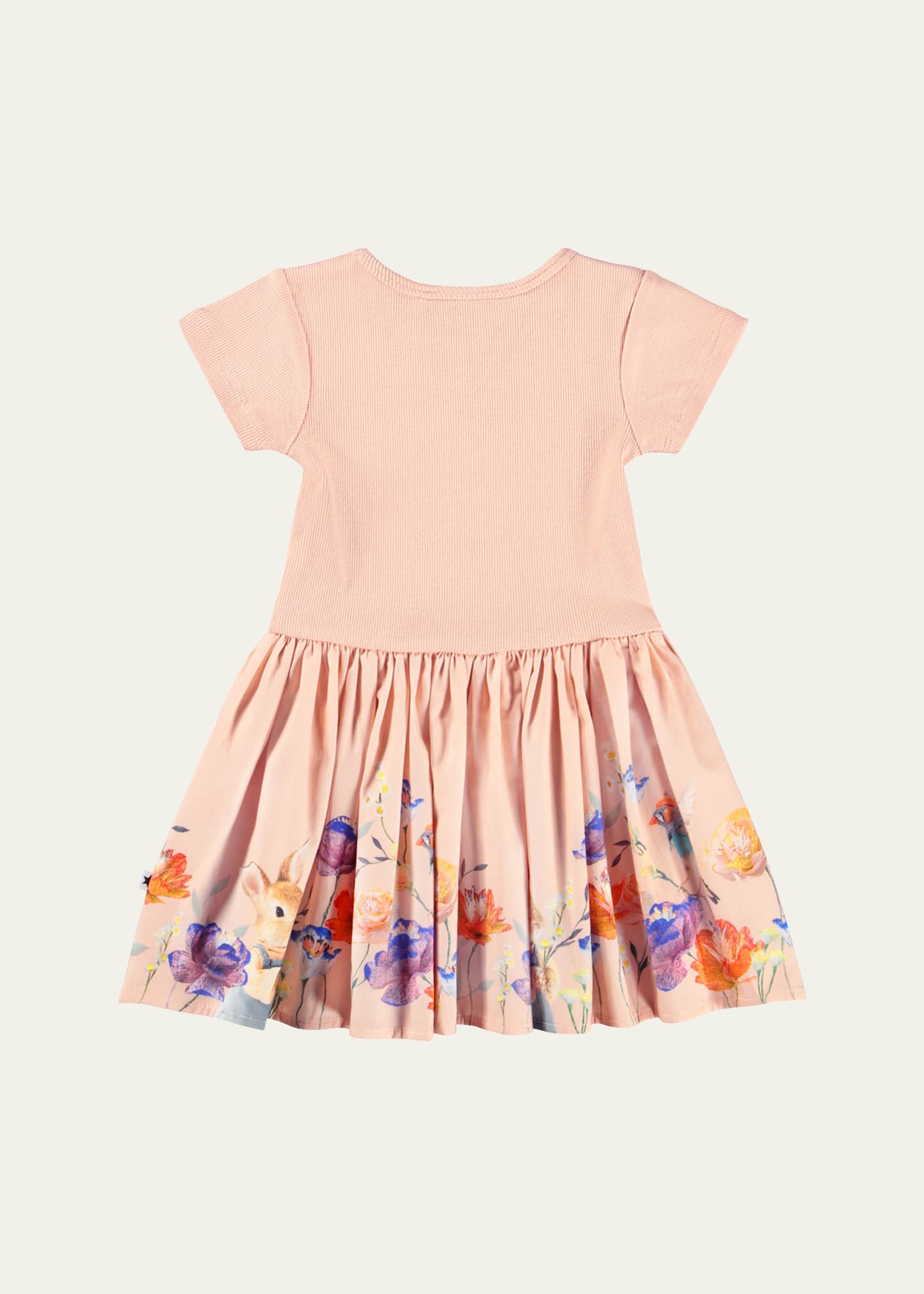 • Molo "Carin" dress pairs ribbed top with a floral-print peplum skirt featuring a woodland animal motif