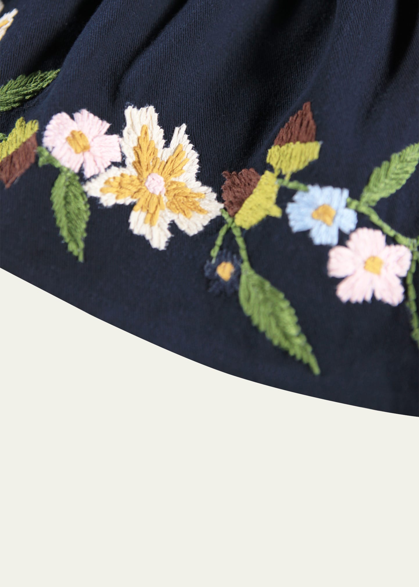 • Molo "Colleena" dress embroidered with lively floral blooms and acorns along the hem