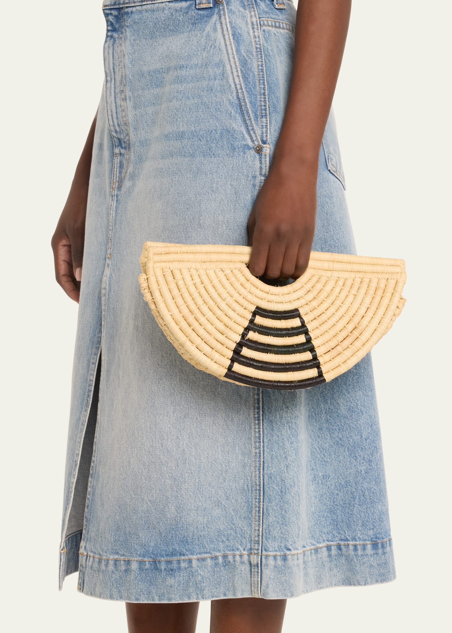 • EILAF half moon top handle bag in raffia and leather