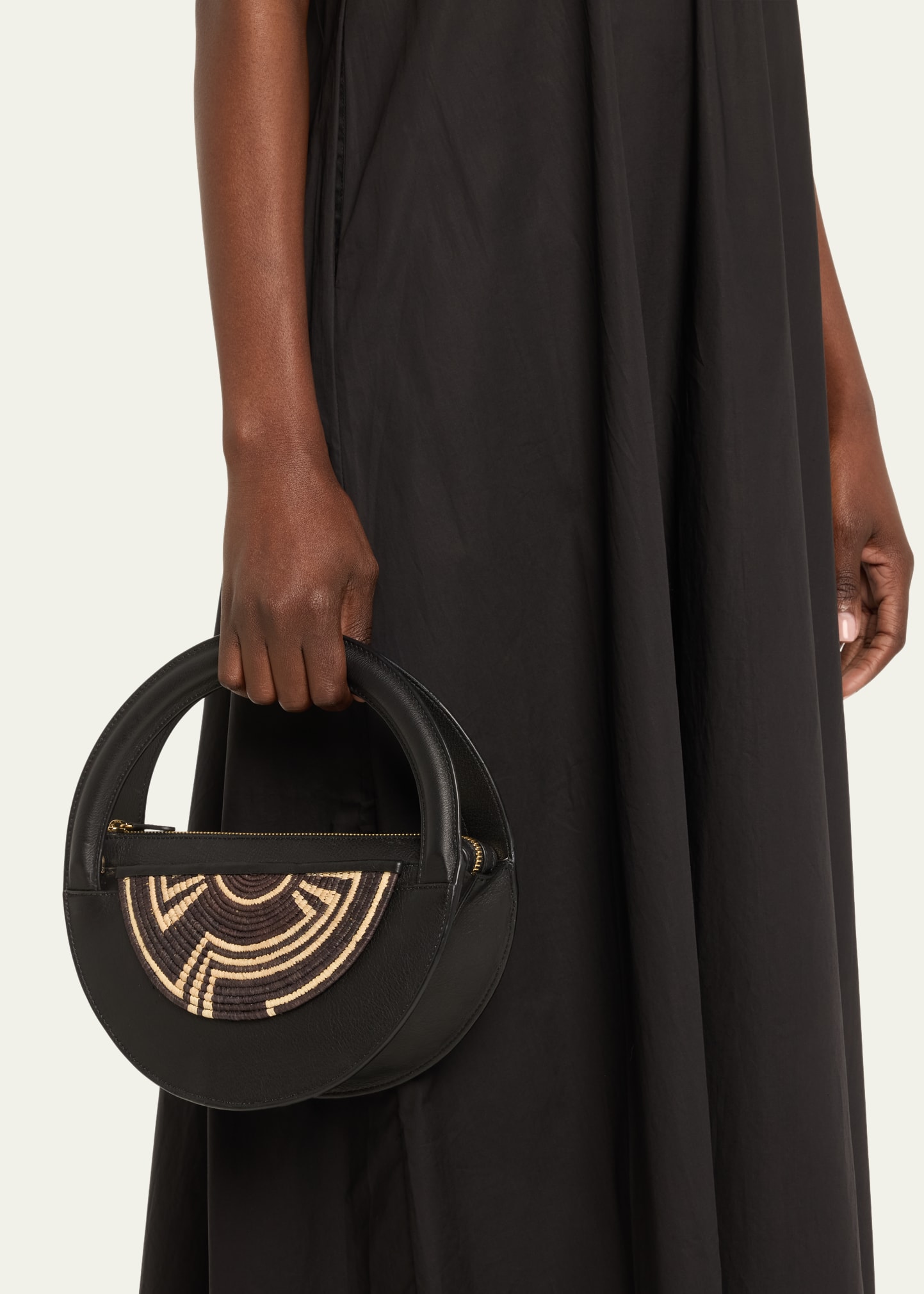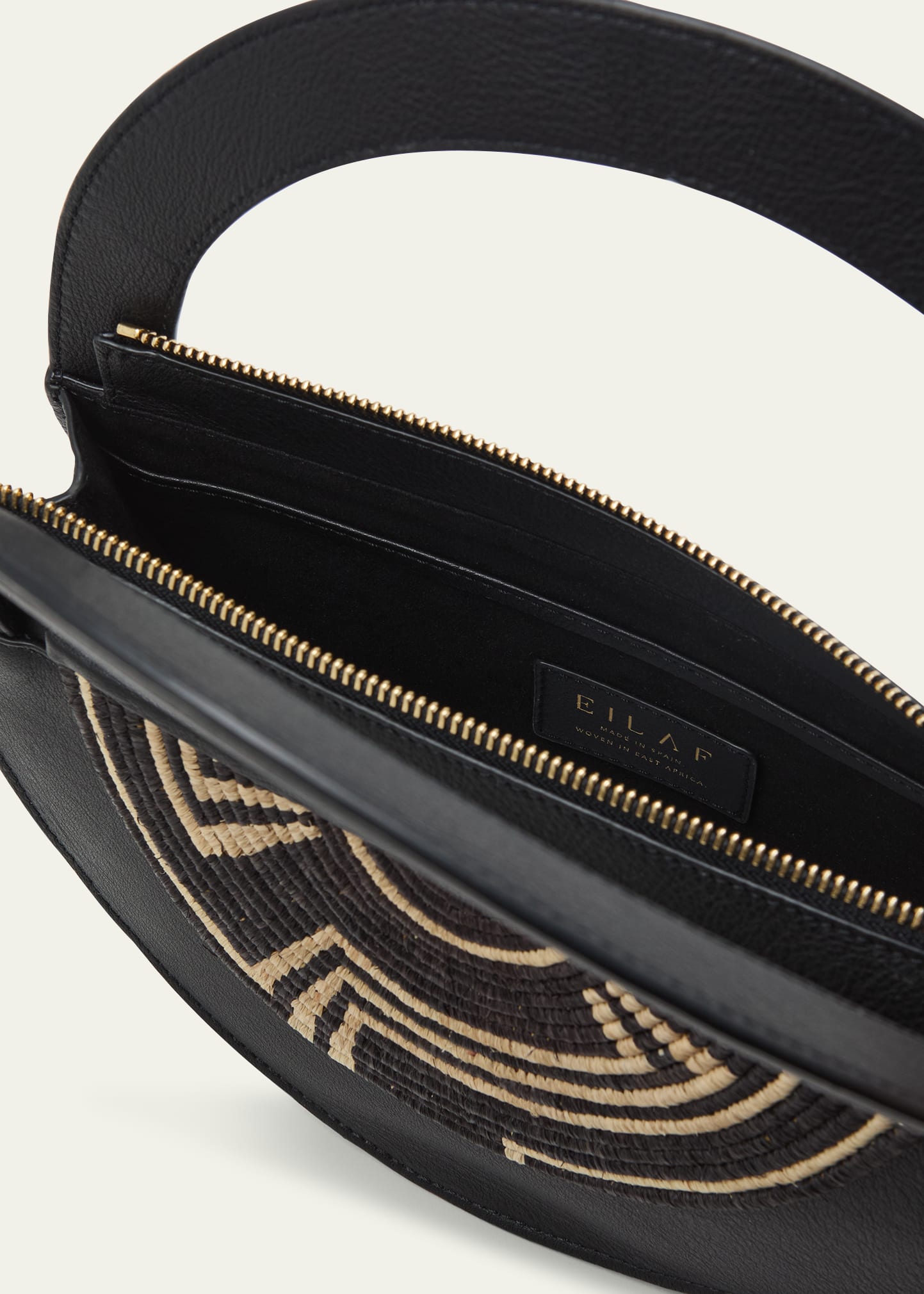 • EILAF "Medani" top handle bag in leather and straw