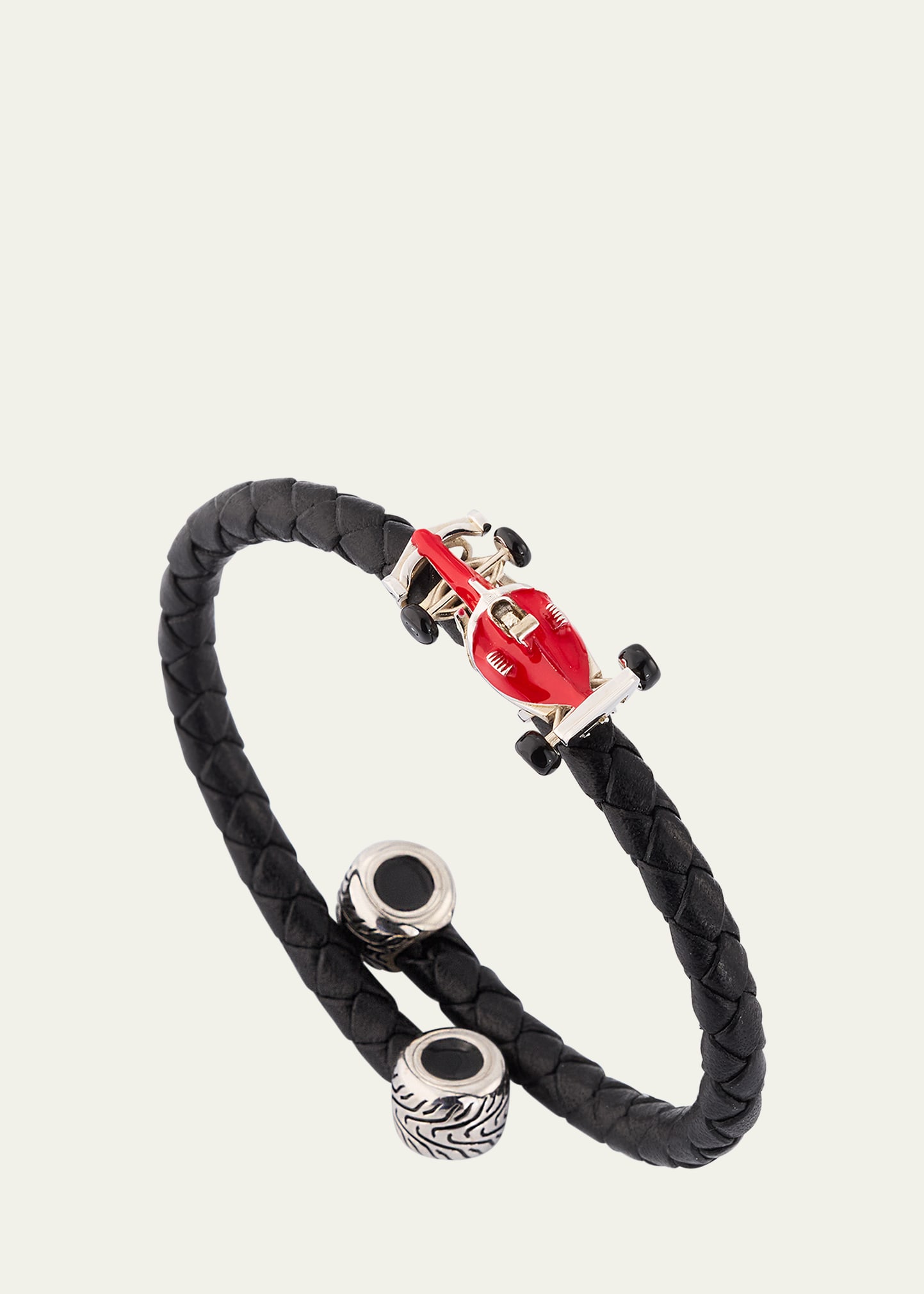 Jan Leslie Men's Braided Leather Bracelet with Enamel Race Car