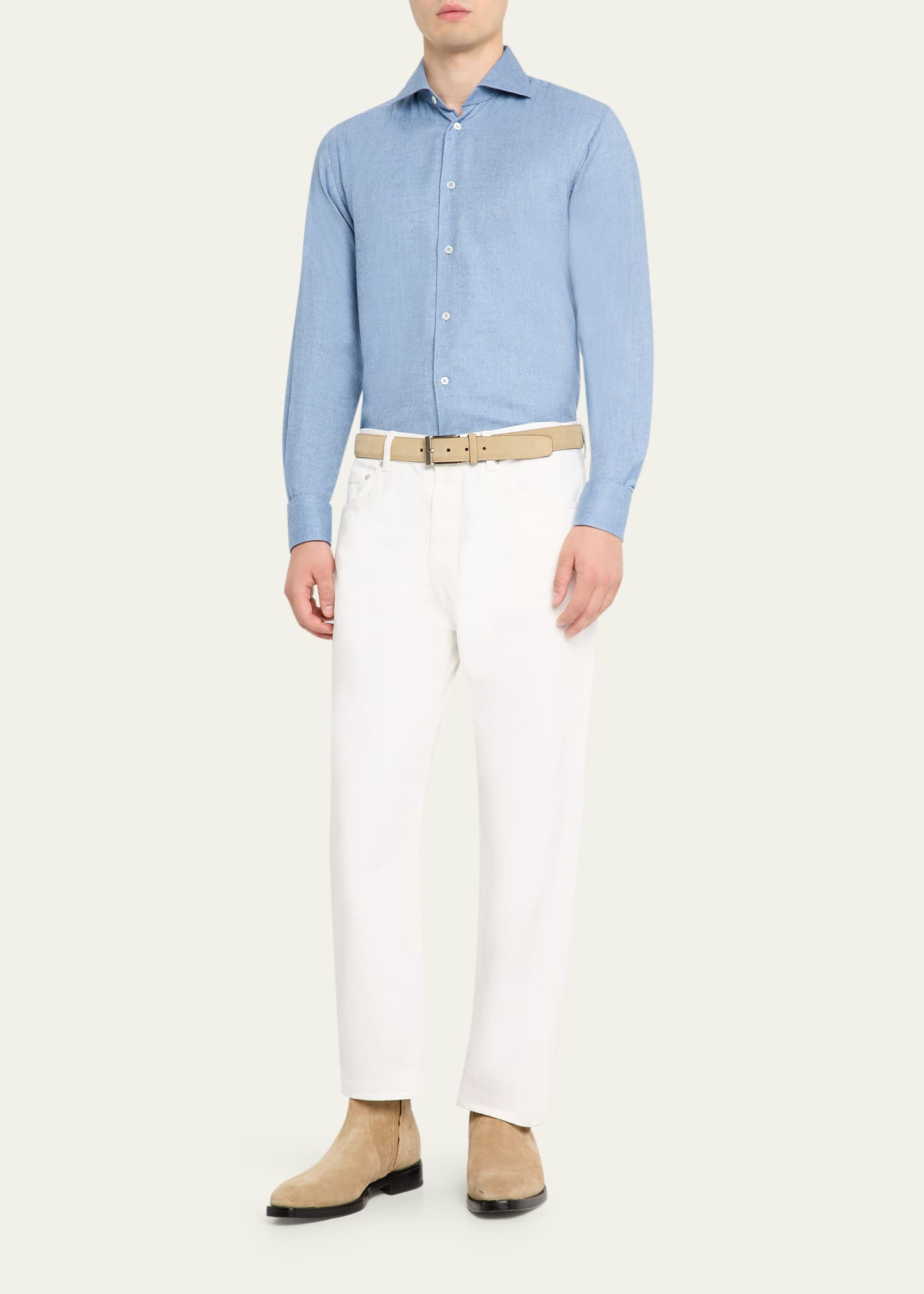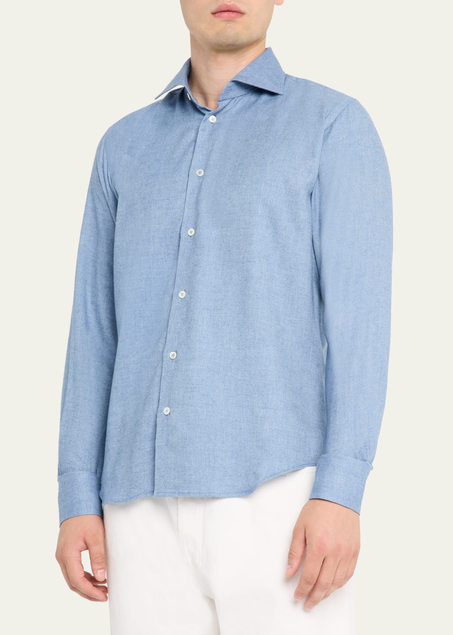 • Mélange cotton threads woven in a micro-herringbone weave create a subtle texture to this Baldassari button-down shirt