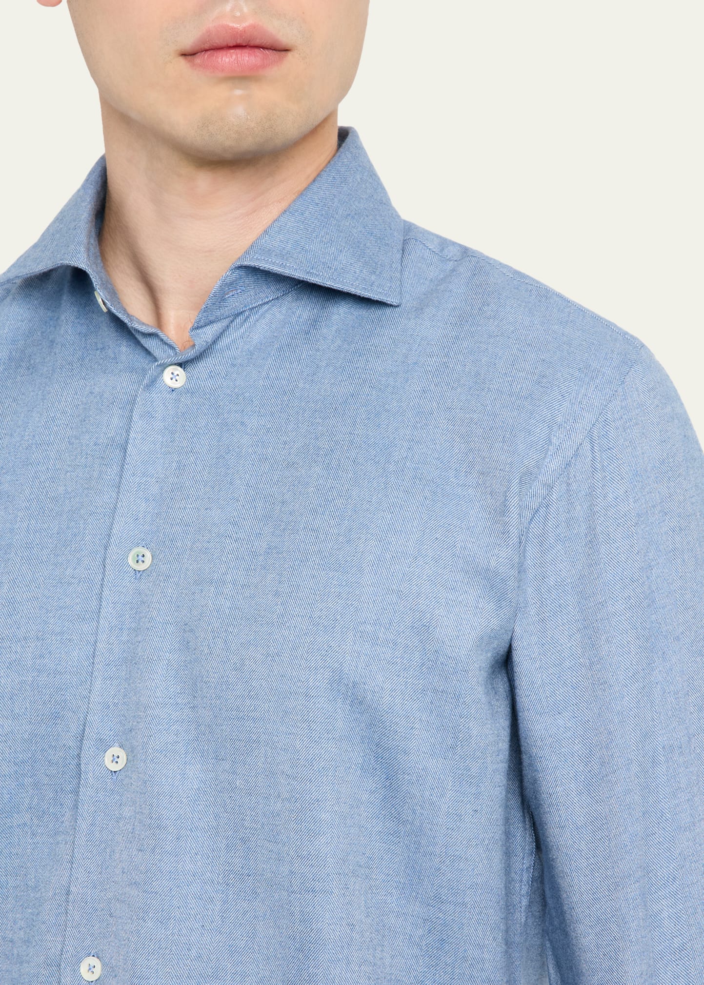 Maurizio Baldassari Men's Cotton Micro-Herringbone Button-Down Shirt
