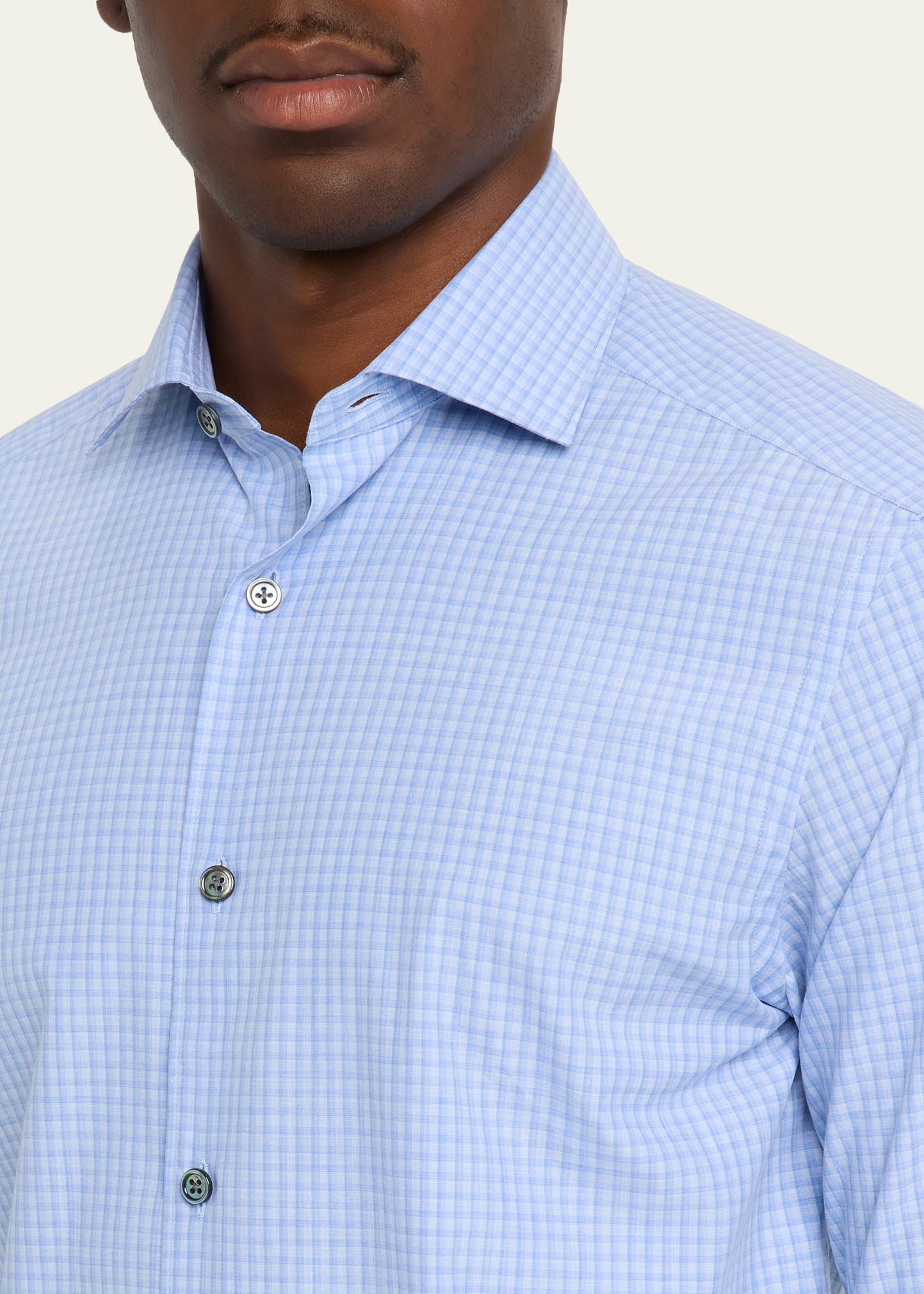 ZEGNA Men's Cotton Tonal Grid Check Sport Shirt