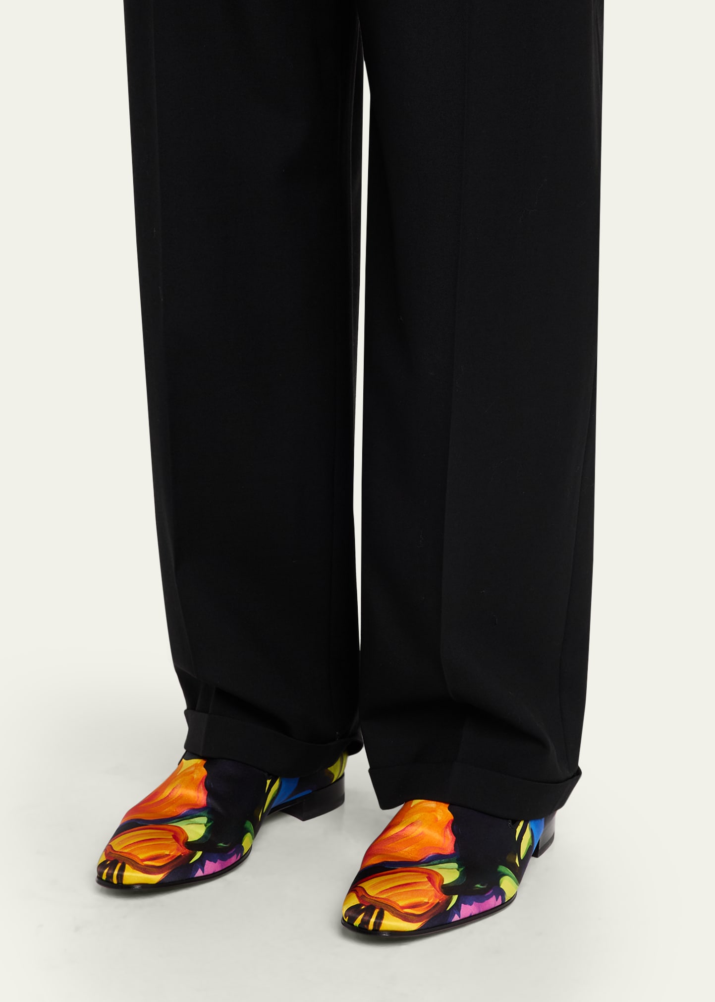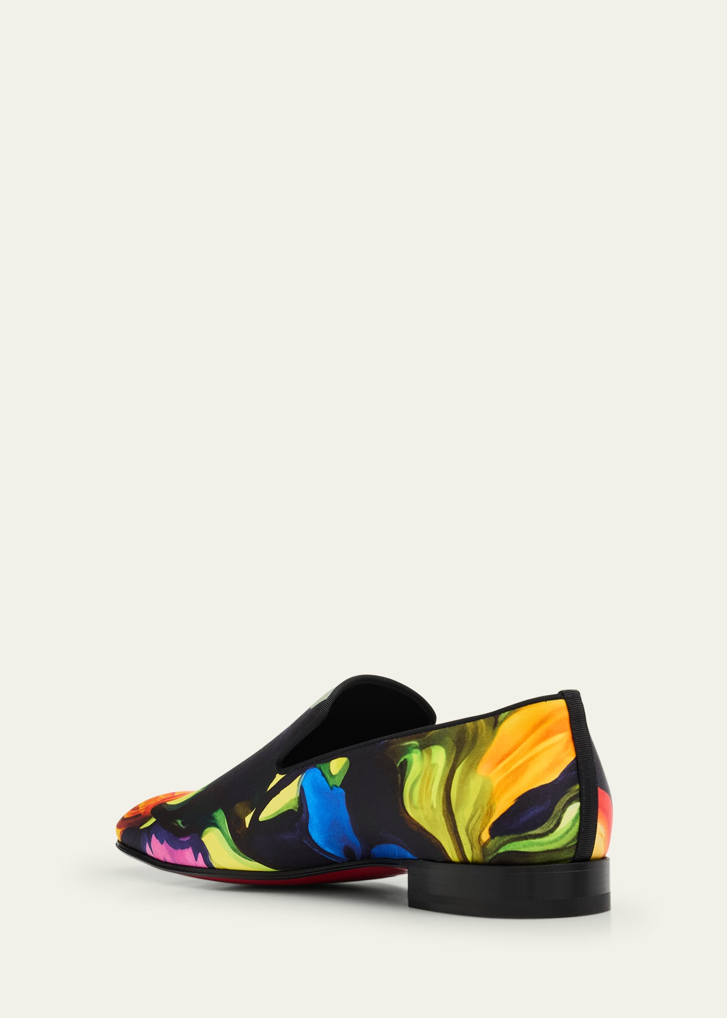 • Christian Louboutin loafers in crepe satin fabric printed with bright abstract florals