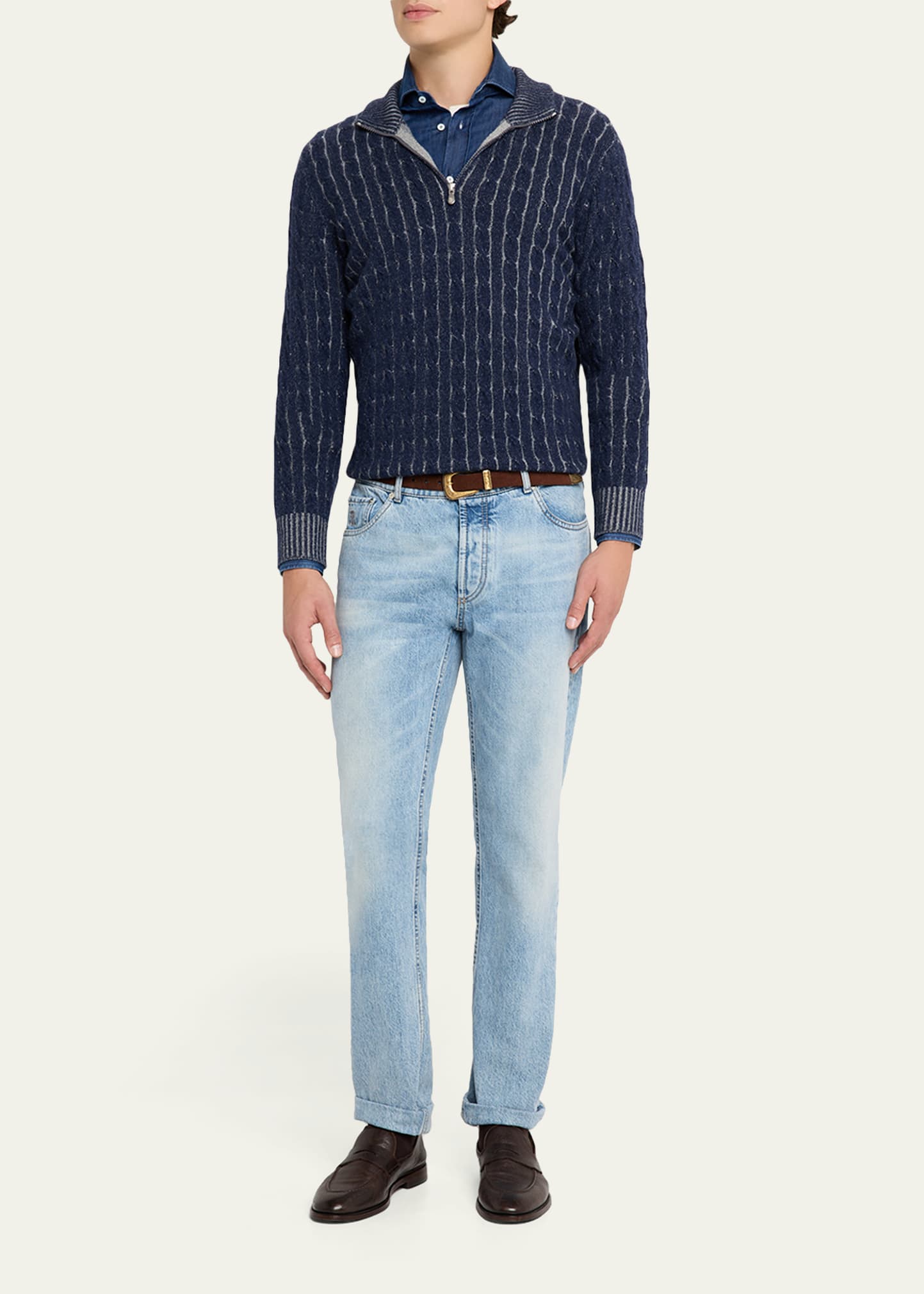What is the Brunello Cucinelli Men'S Denim Spread Collar Button-Down Shirt price?
