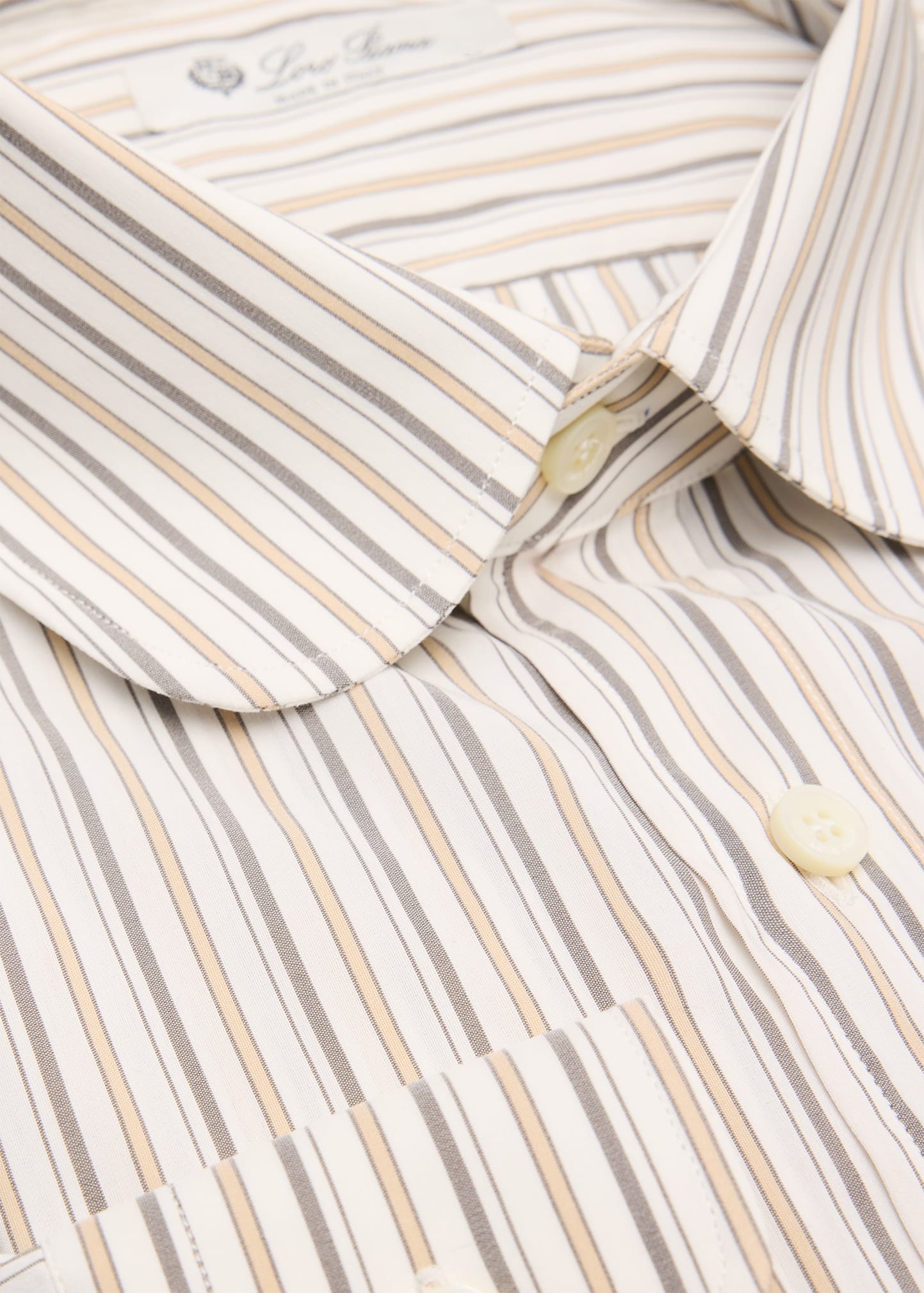 • The "Elia" formal shirt by Loro Piana is cut from cotton and silk with a micro stripe pattern, lending interest to its smooth, fluid surface.