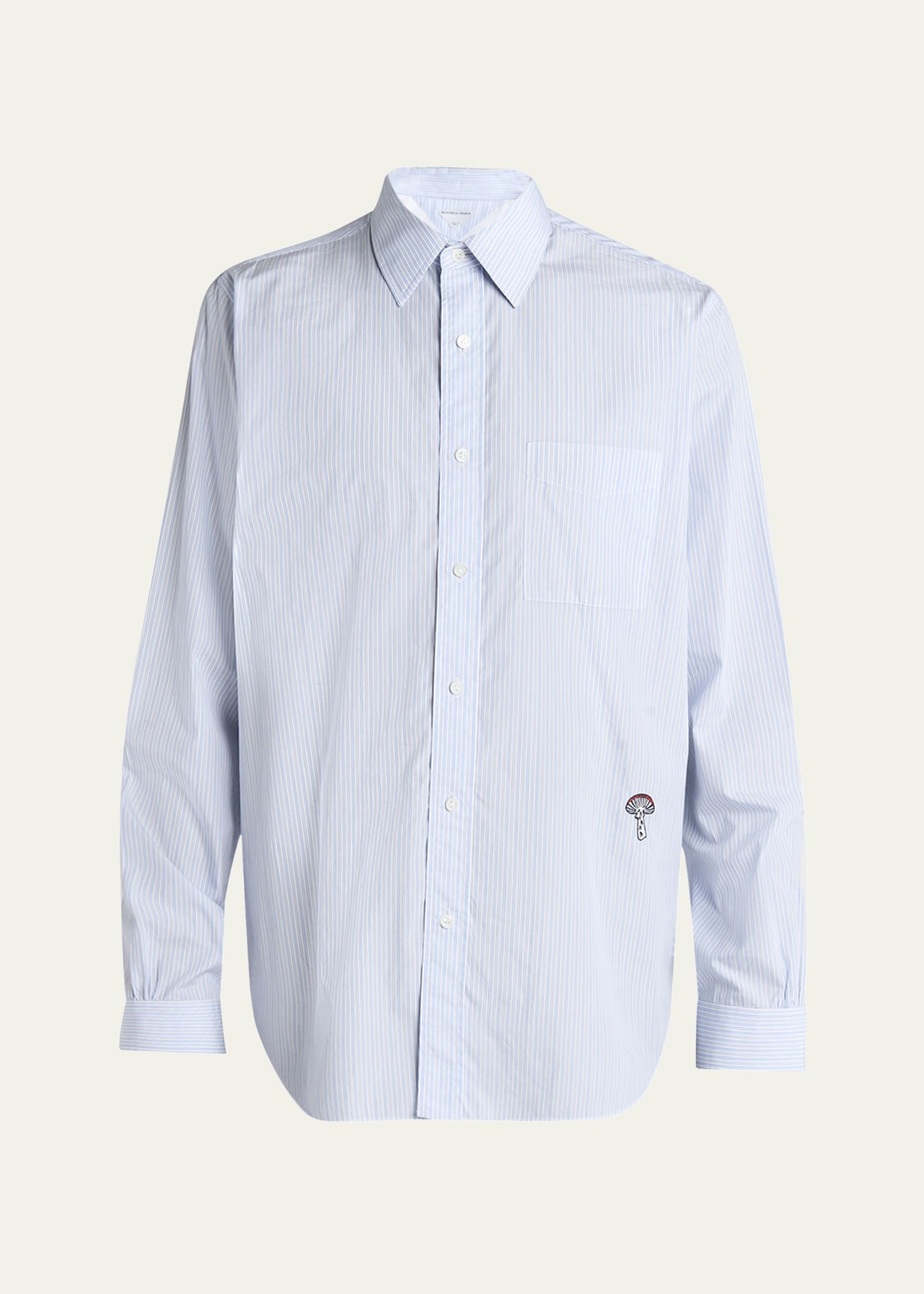 How much does the Bottega Veneta Men'S Fine Stripe Poplin Shirt With Embroidered Mushroom Patch cost?
