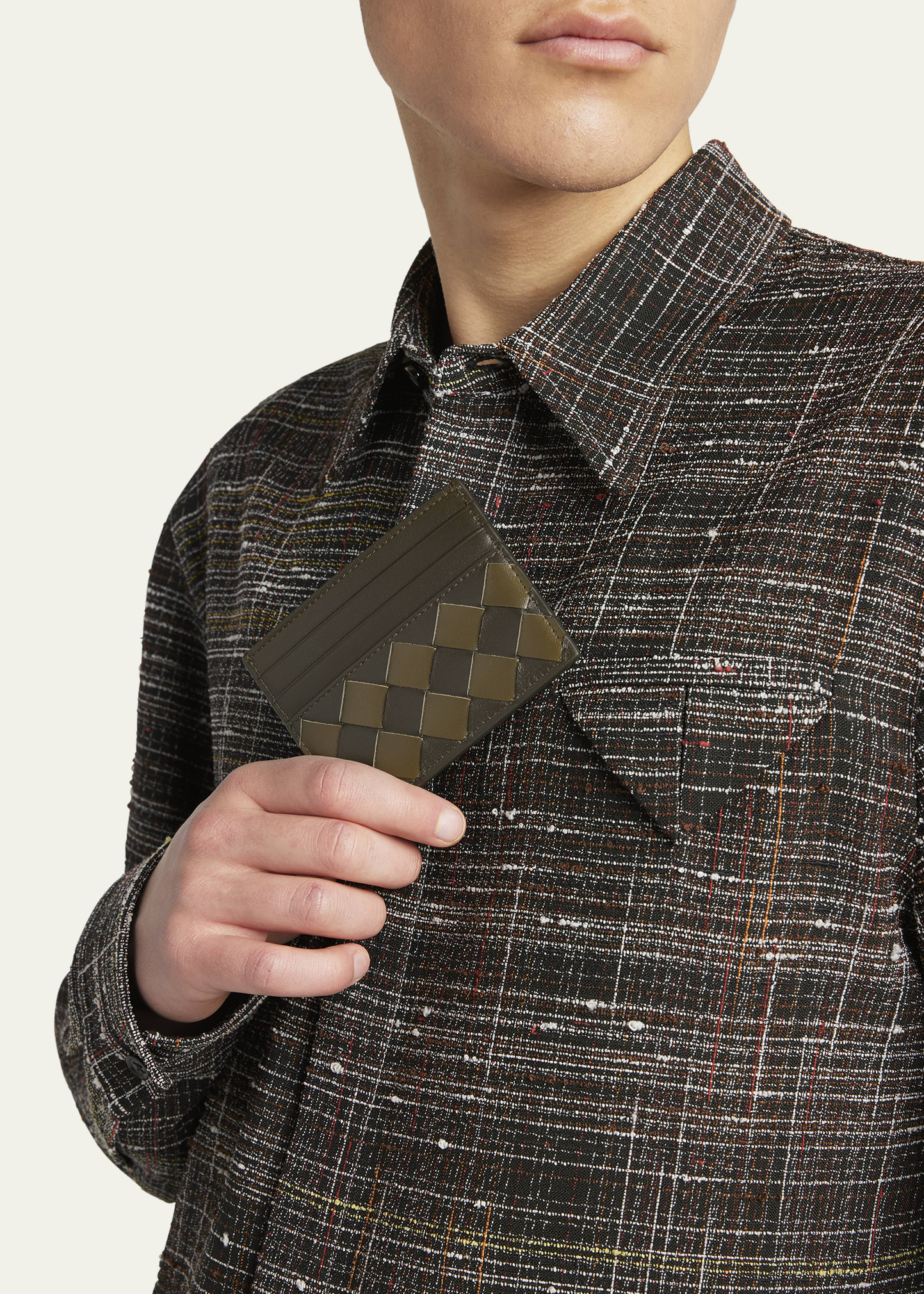 What is the Bottega Veneta Men'S Intrecciato 15 Avenue Check Card Case price?