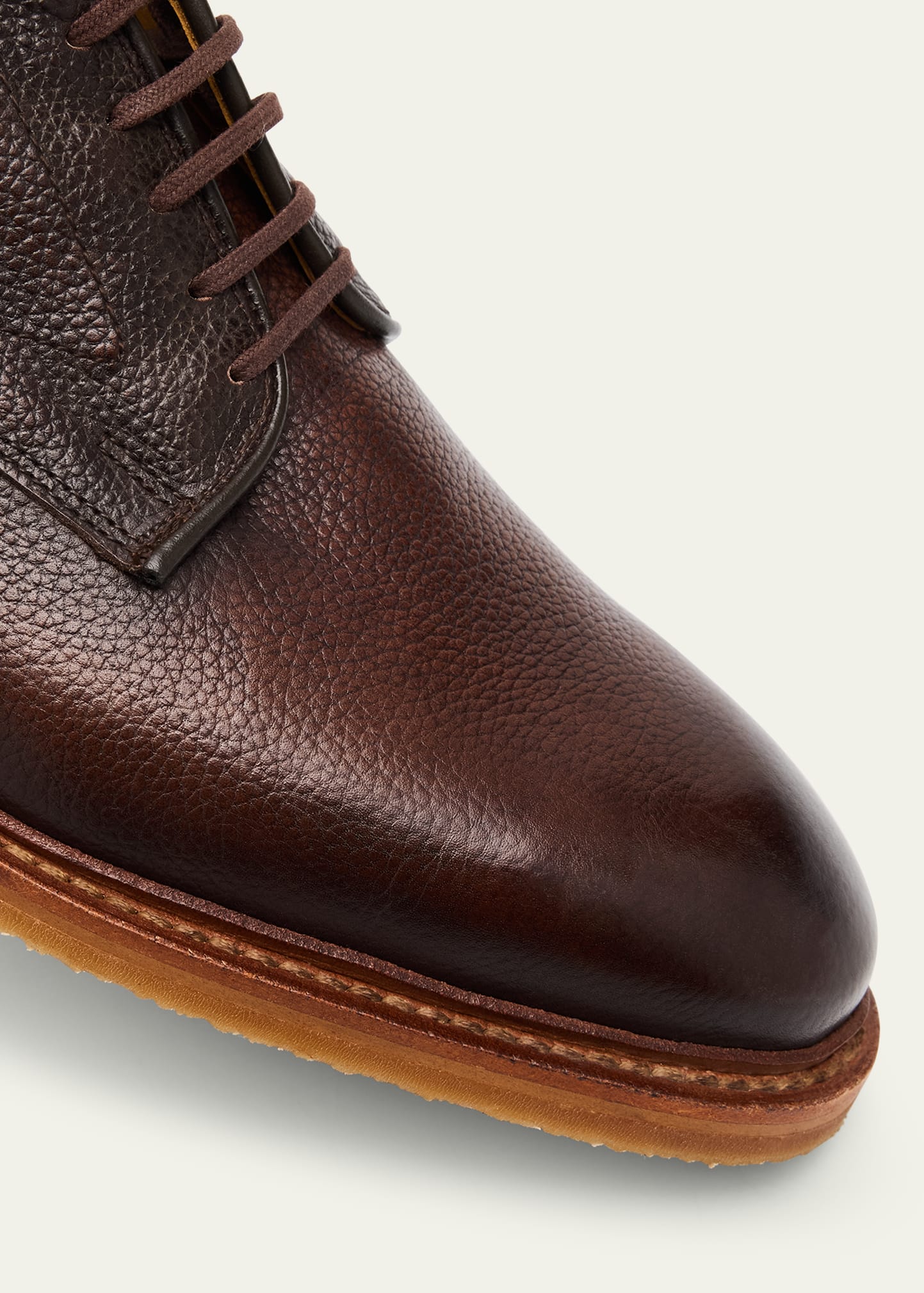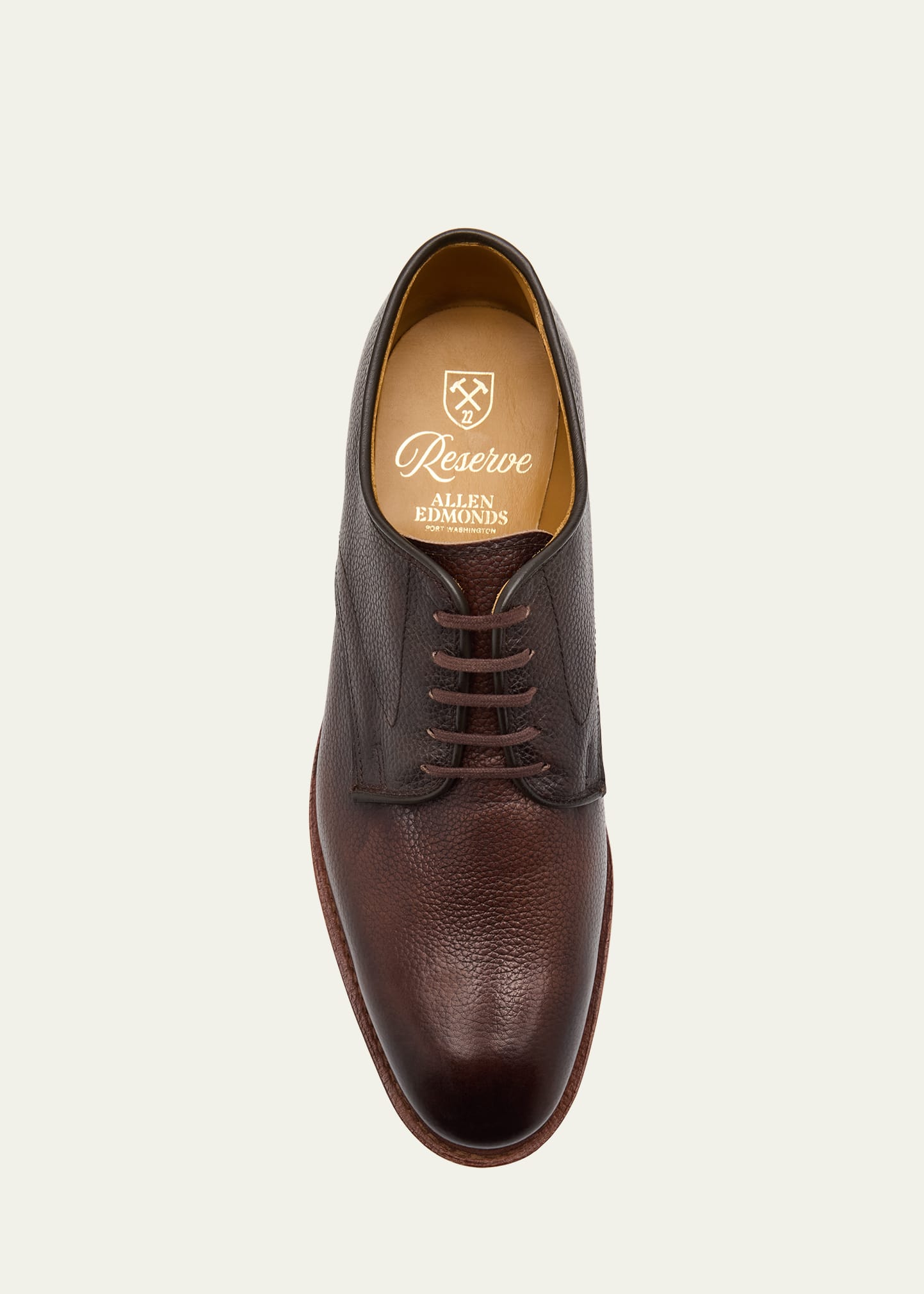 • Allen Edmonds Reserve "Maverick" derby shoes handcrafted from textured European calfskin leather hand treated for a soft, supple feel