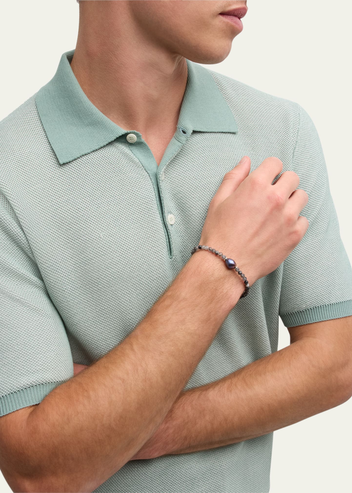What is the Jan Leslie Men'S Rutliated Quartz Beaded Bracelet With Grey Pearl price?