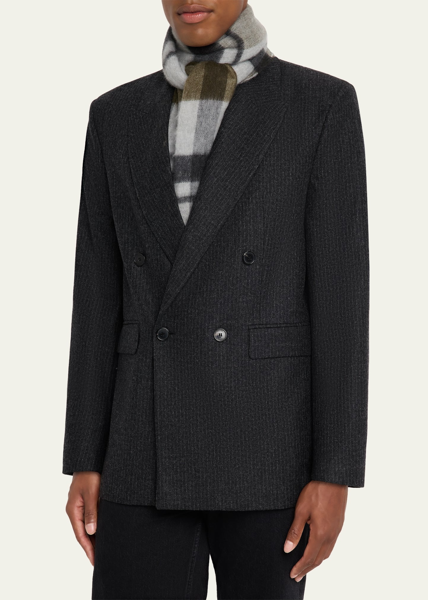 • Begg x Co "Taransay" scarf with a check intarsia