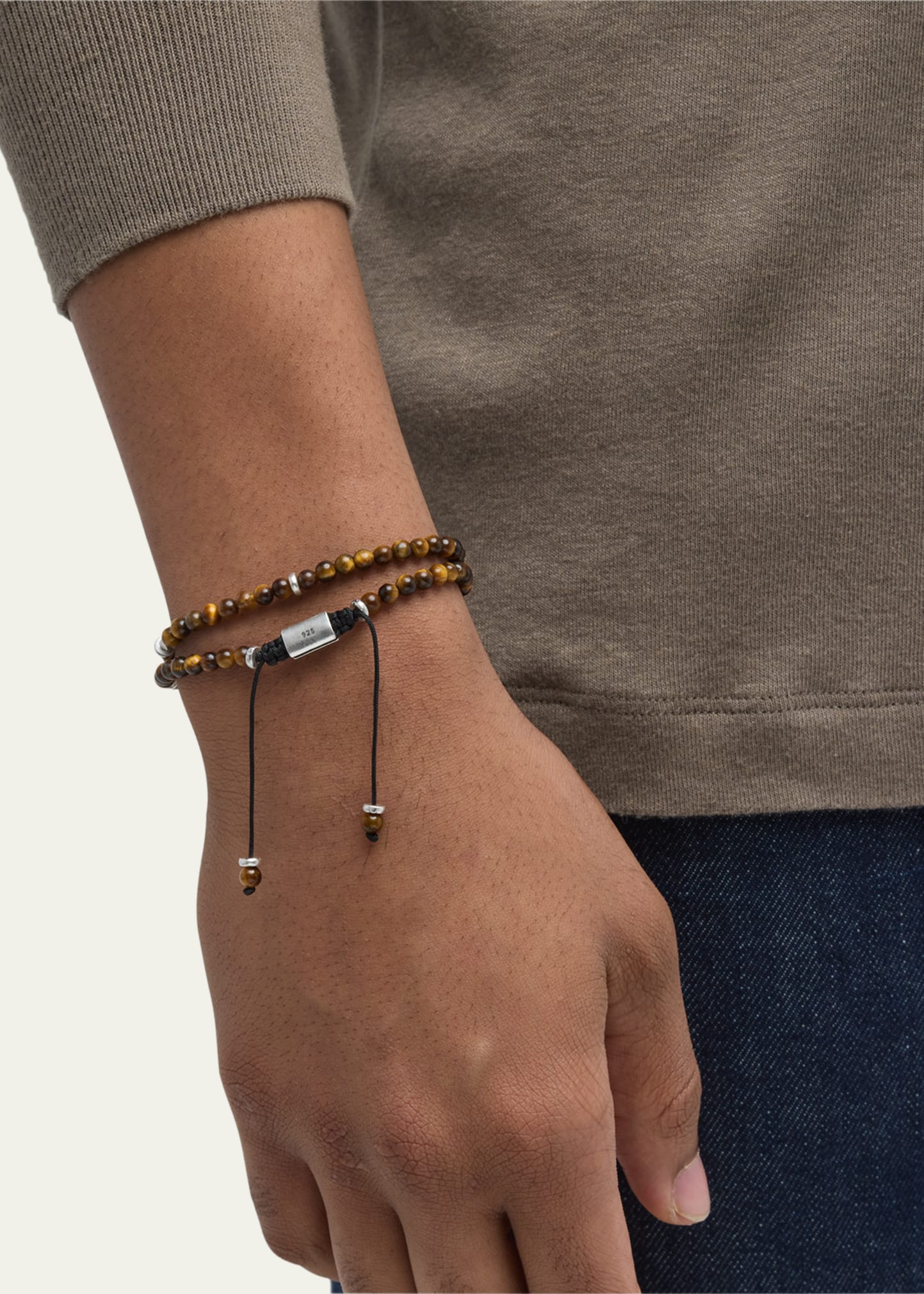 Jan Leslie Men's Tiger's Eye and Silver Double-Wrap Beaded Bracelet