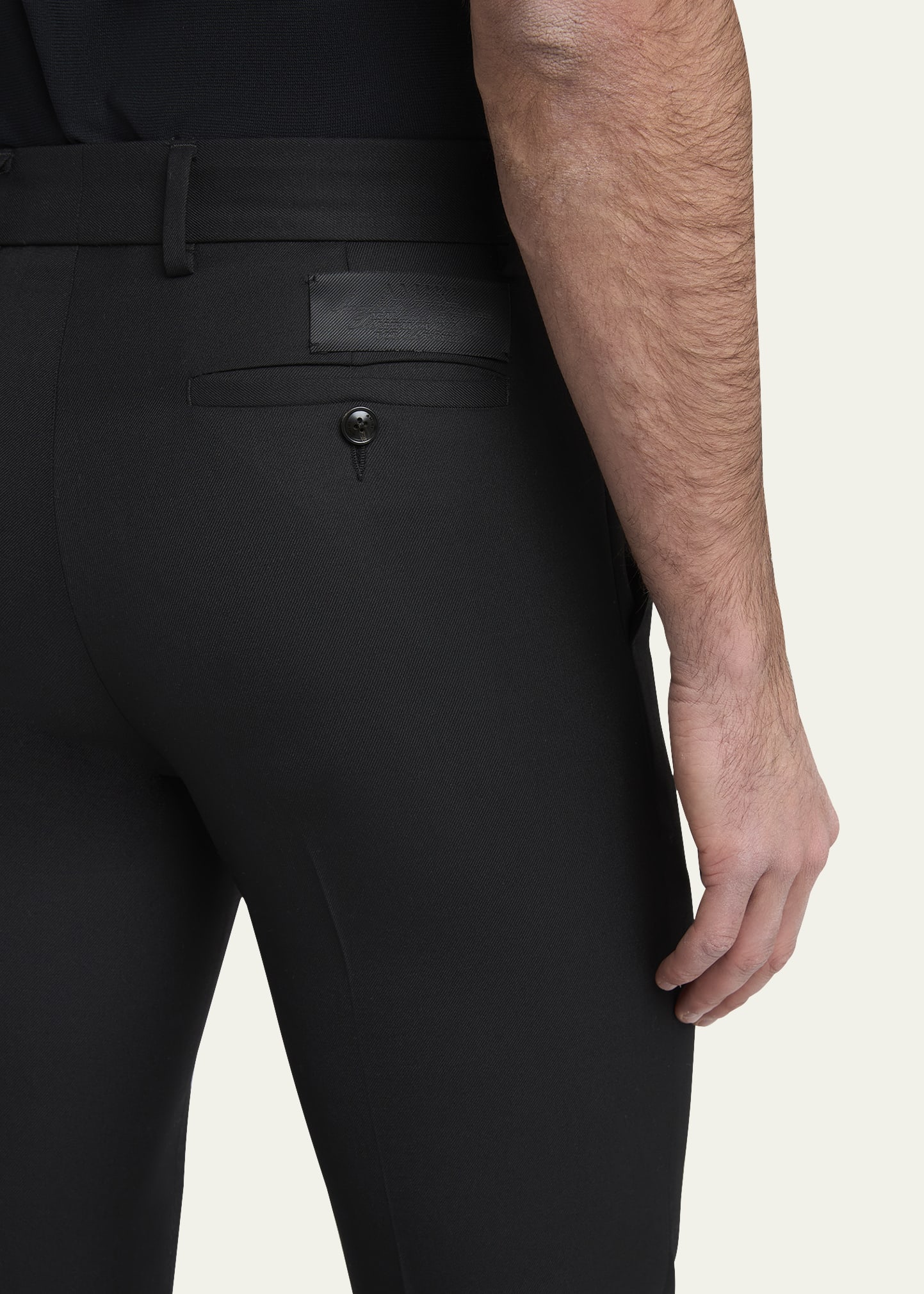 • Extended hook zip fly; belt loops