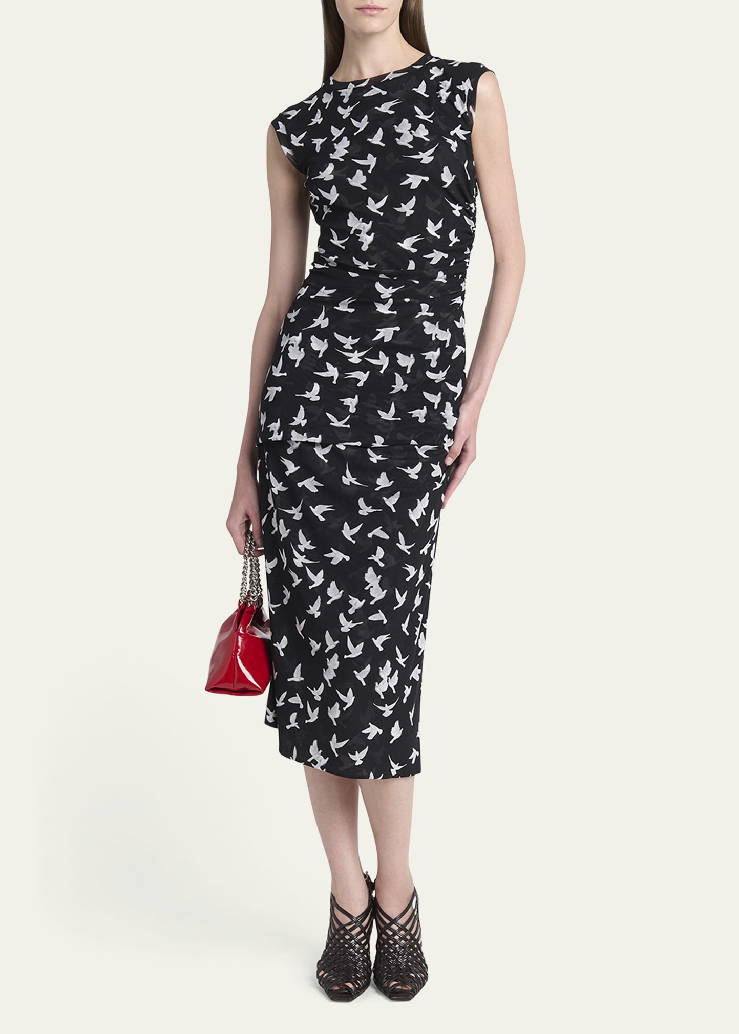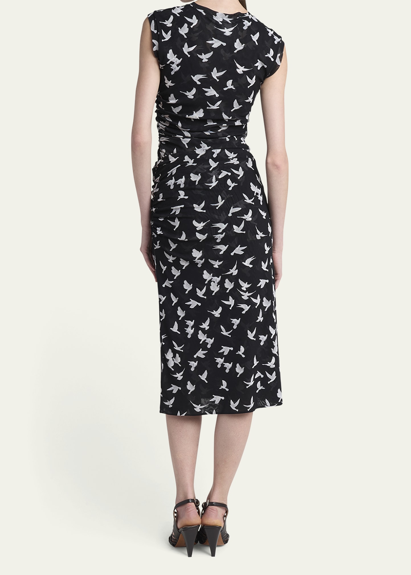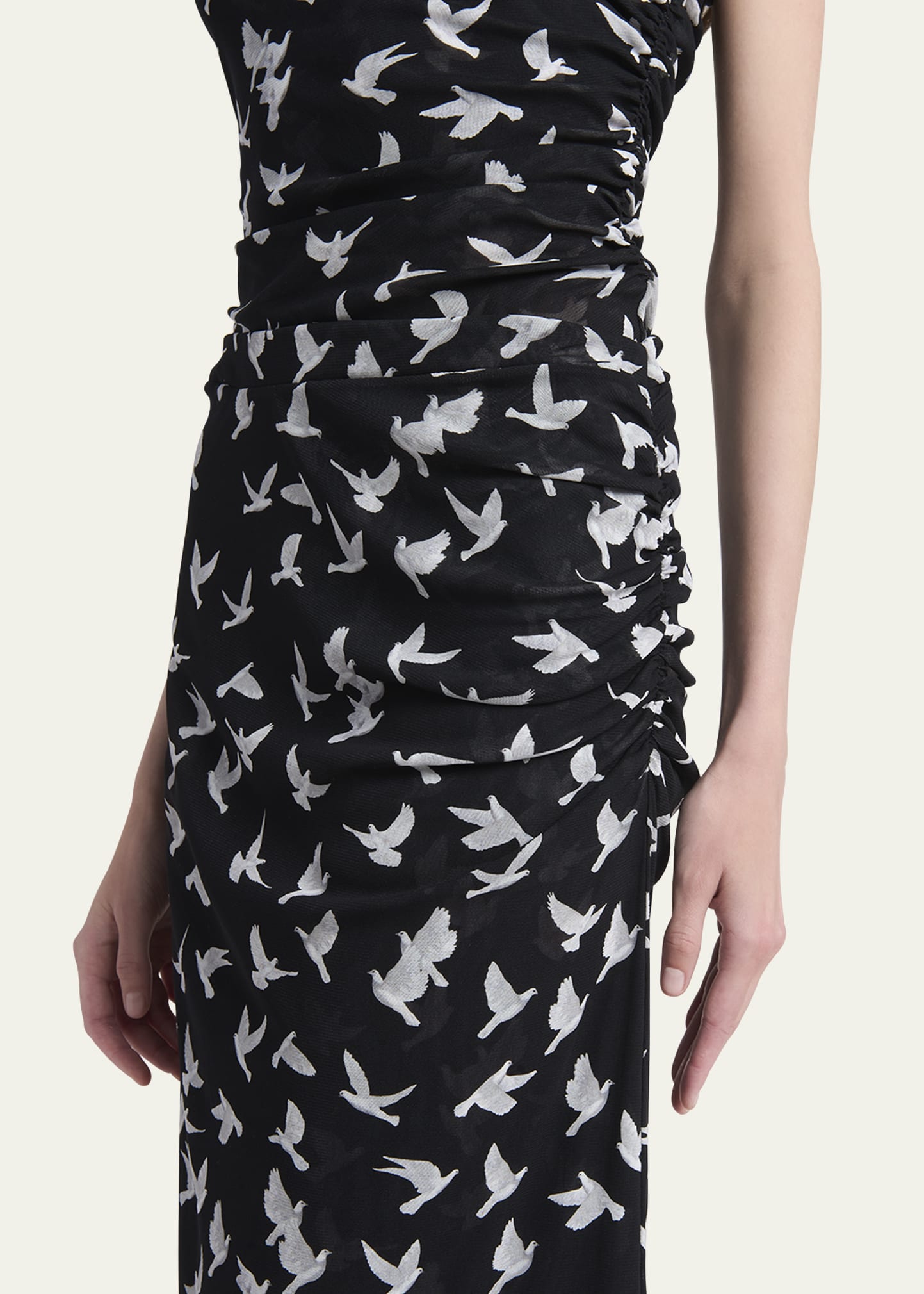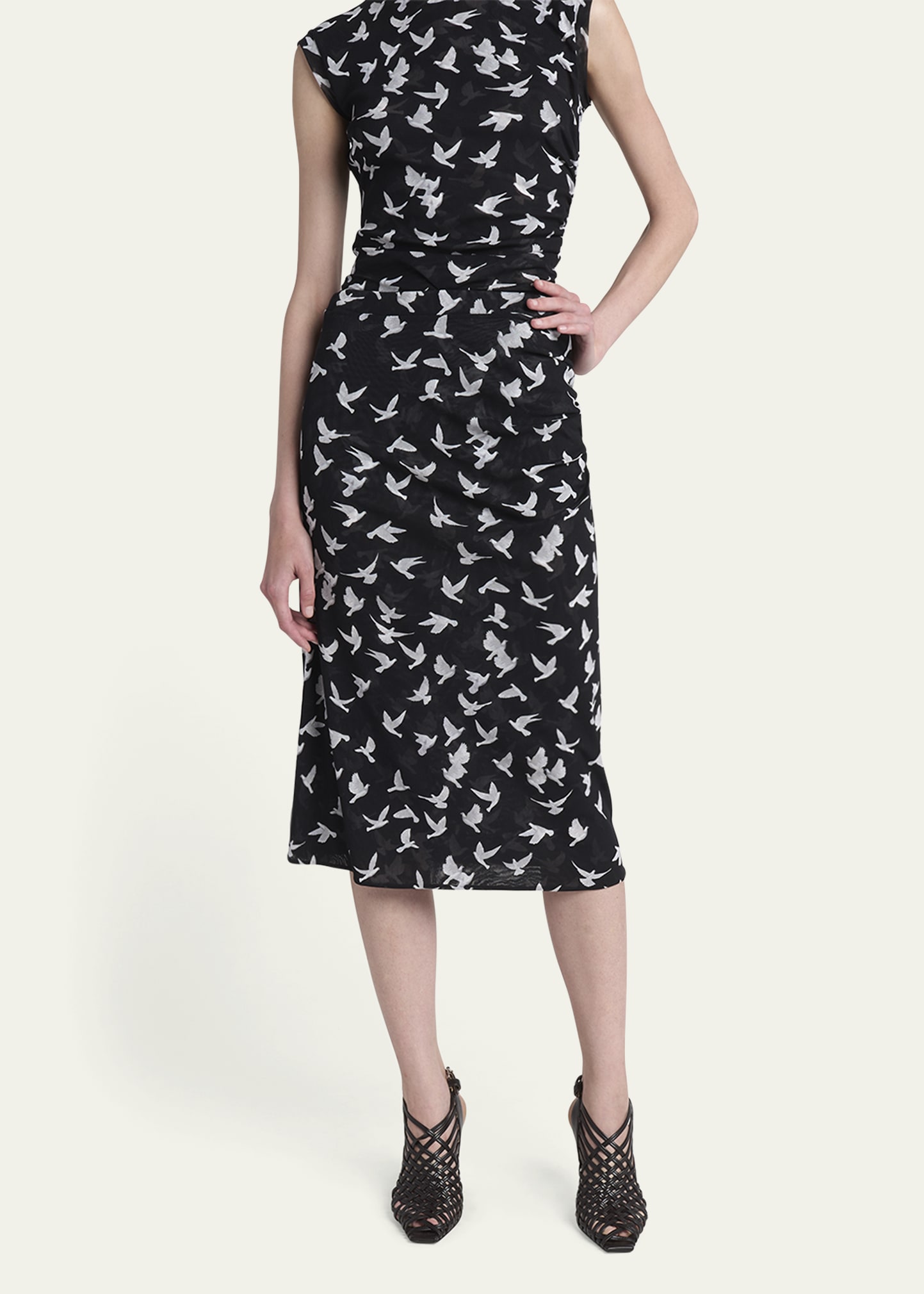 Stella McCartney Mesh Flying Bird Haze Ruched Midi Skirt