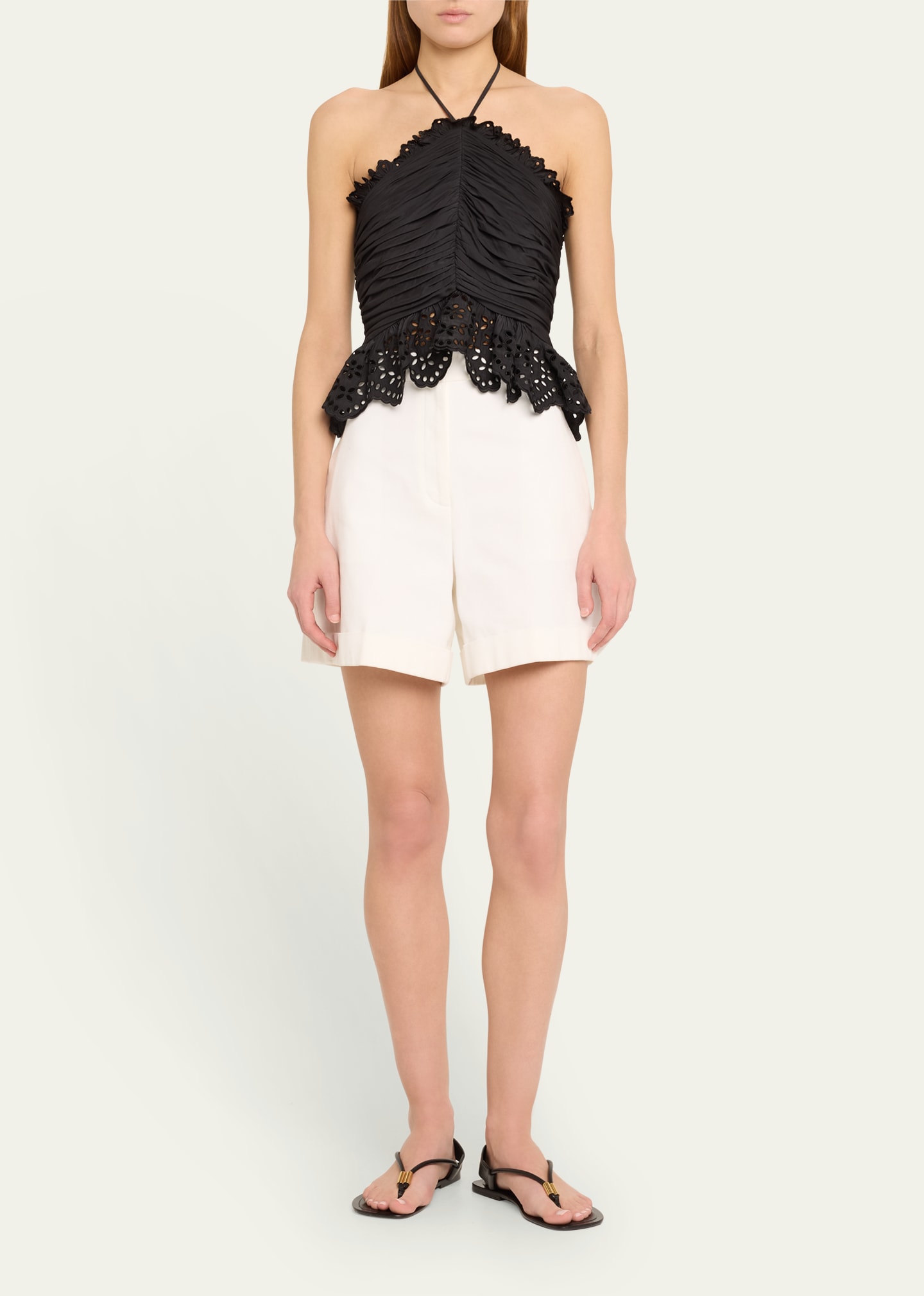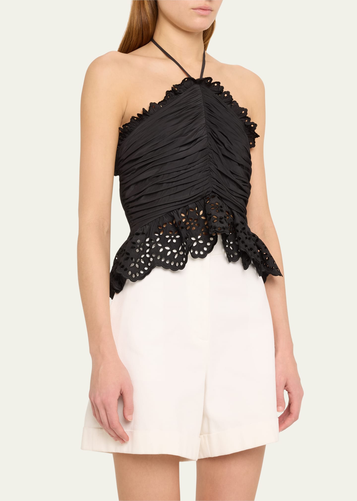 What is the Ramy Brook Michelle Gathered Eyelet-Trim Halter Blouse price?
