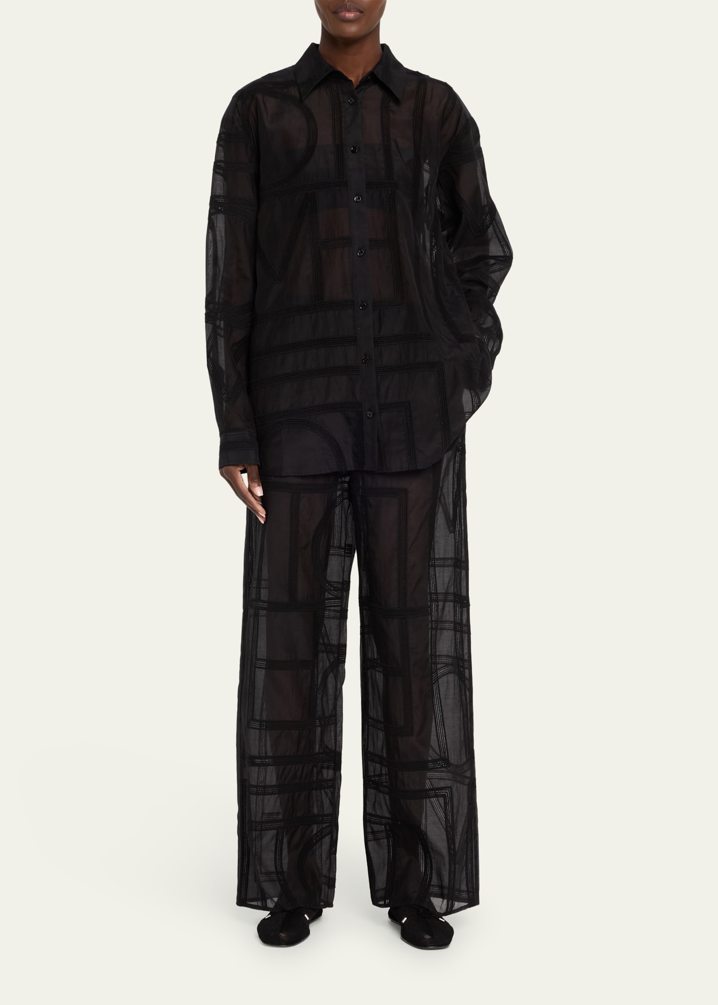 • Toteme classic coton voile shirt animated with a crochet-inspired embroidery of the toteme monogram