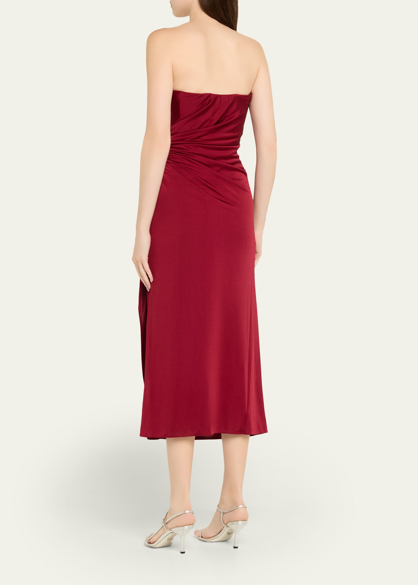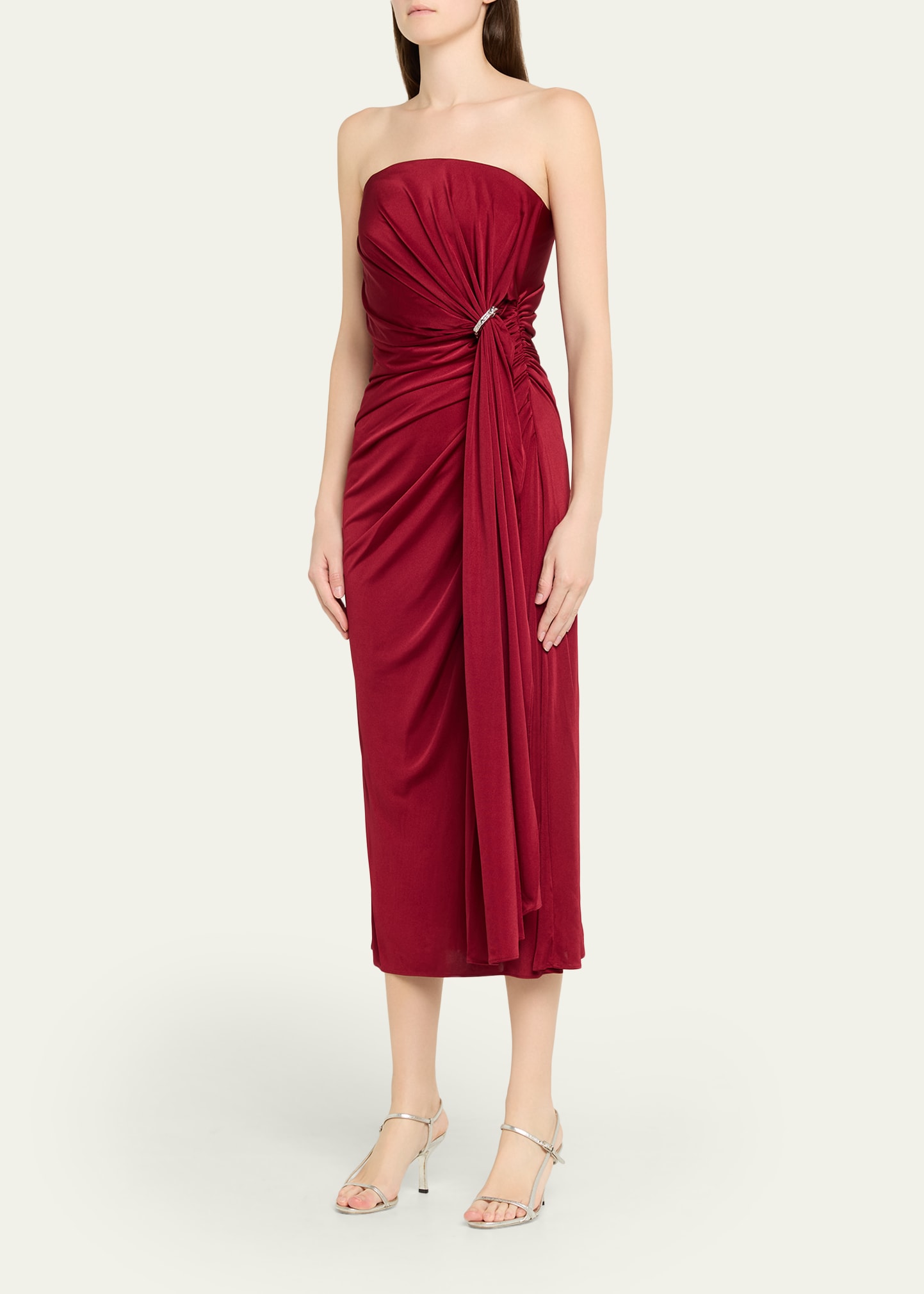 How much does the Halston Nadia Strapless Draped Jersey Midi Dress cost?