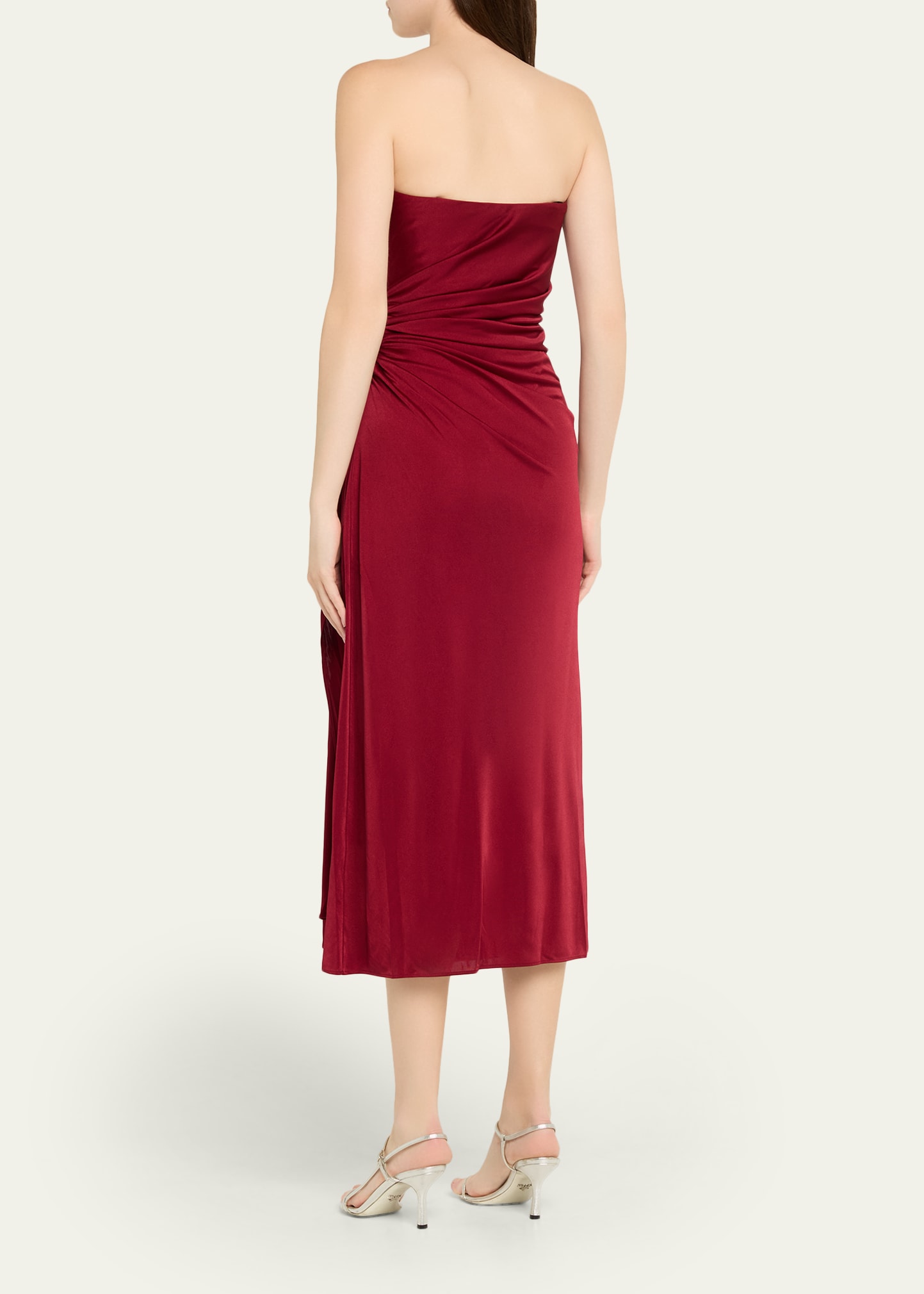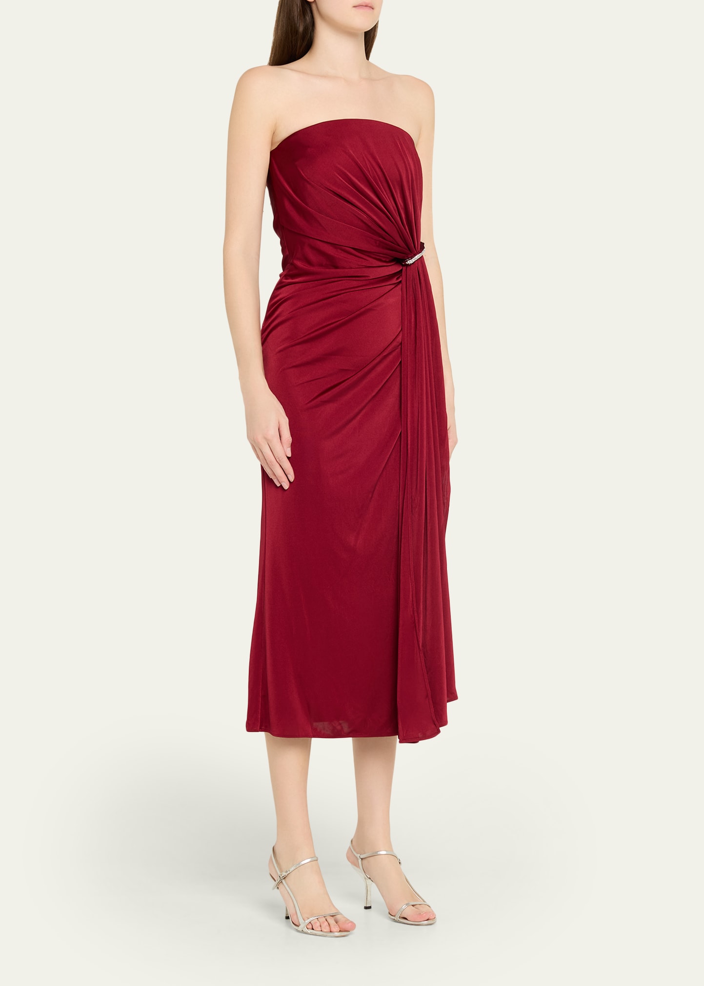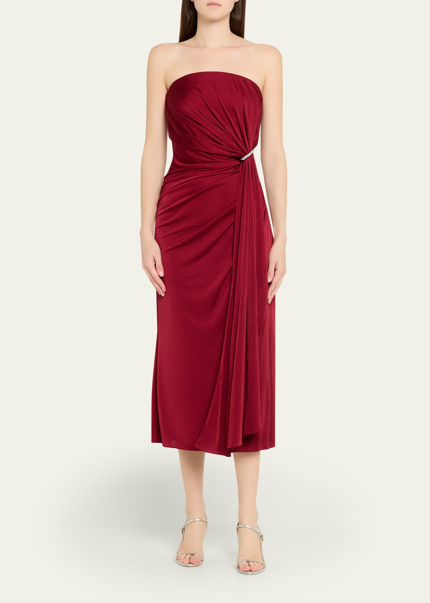 How much does the Halston Nadia Strapless Draped Jersey Midi Dress cost?