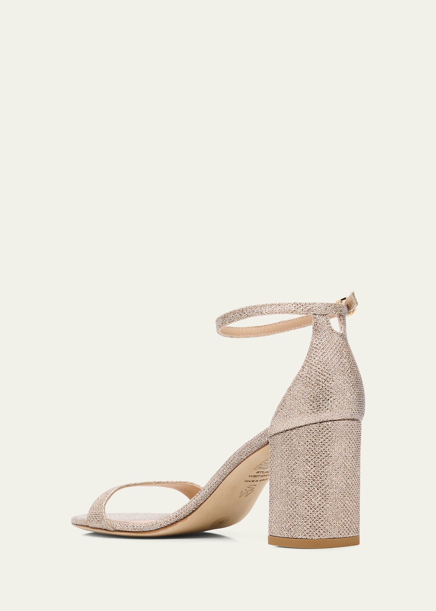 What is the Stuart Weitzman Nudist 75Mm Metallic Block Sandals price?