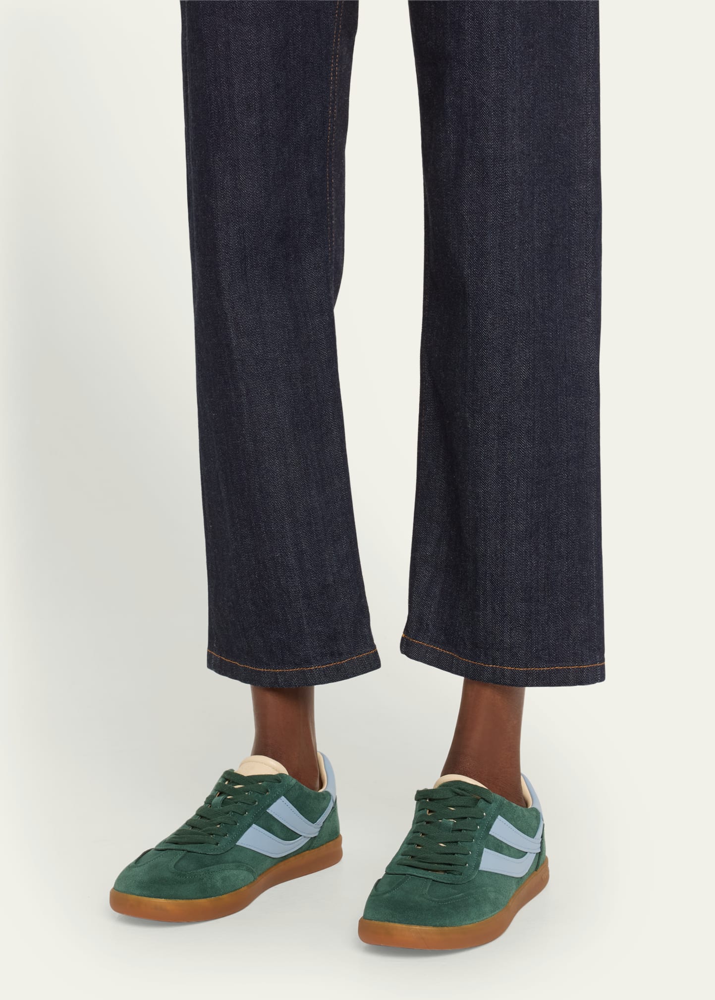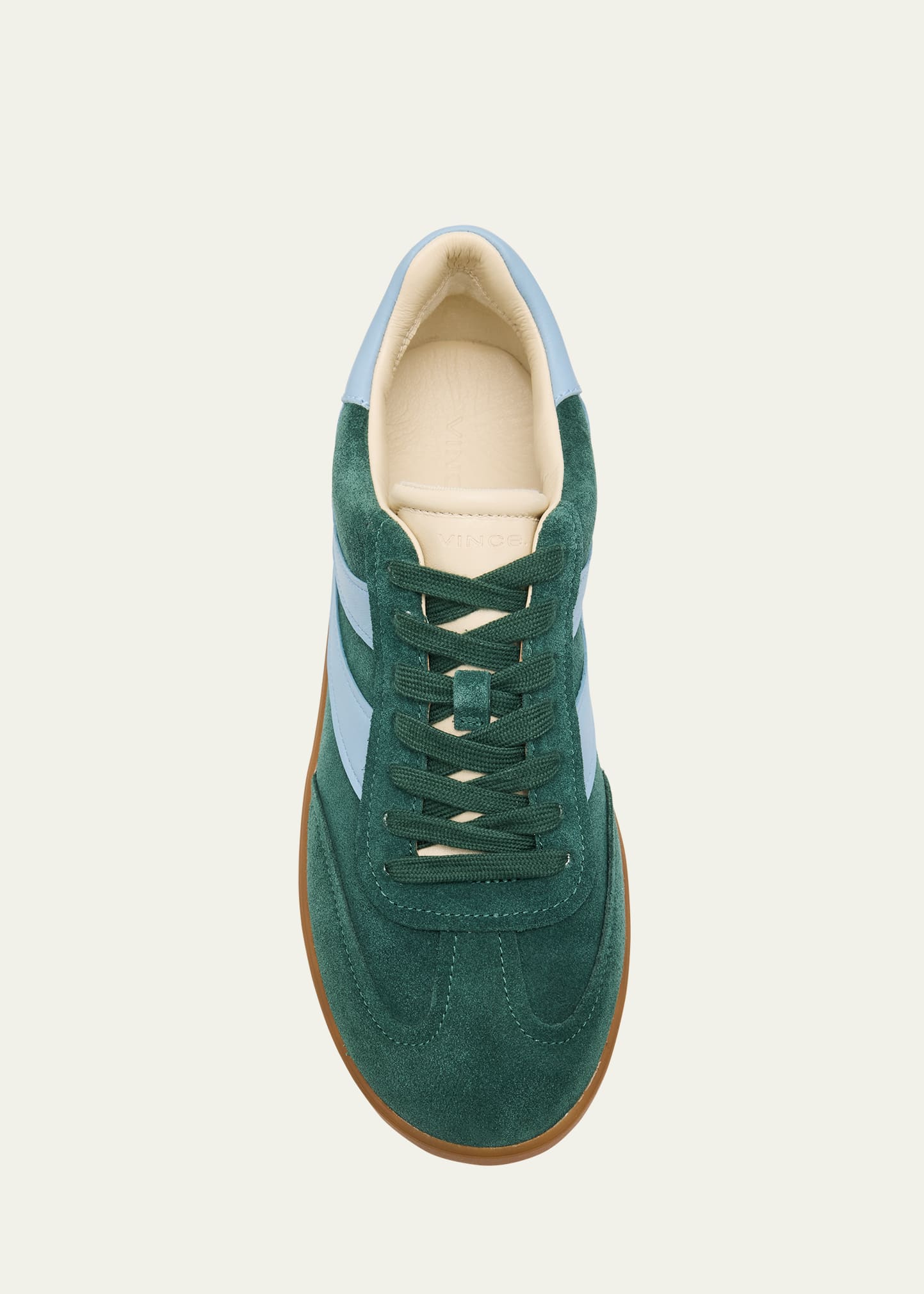 • Vince "Oasis" low-top bicolor leather and suede retro sneakers