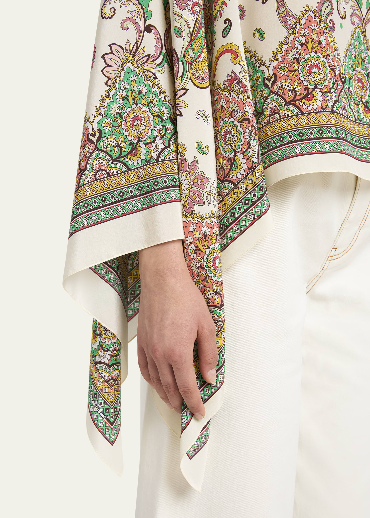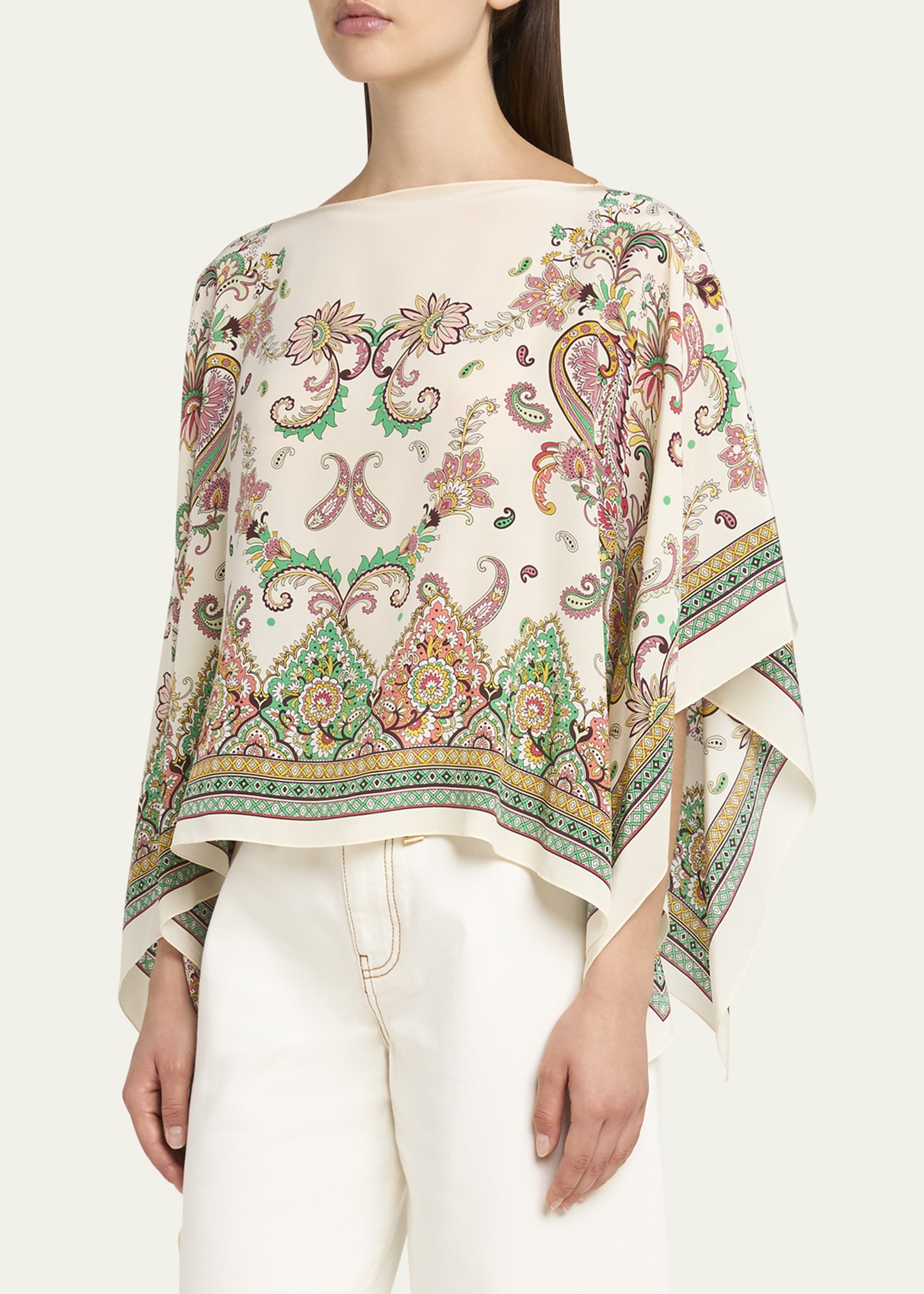 Etro Paisley-Print Silk Asymmetric Poncho