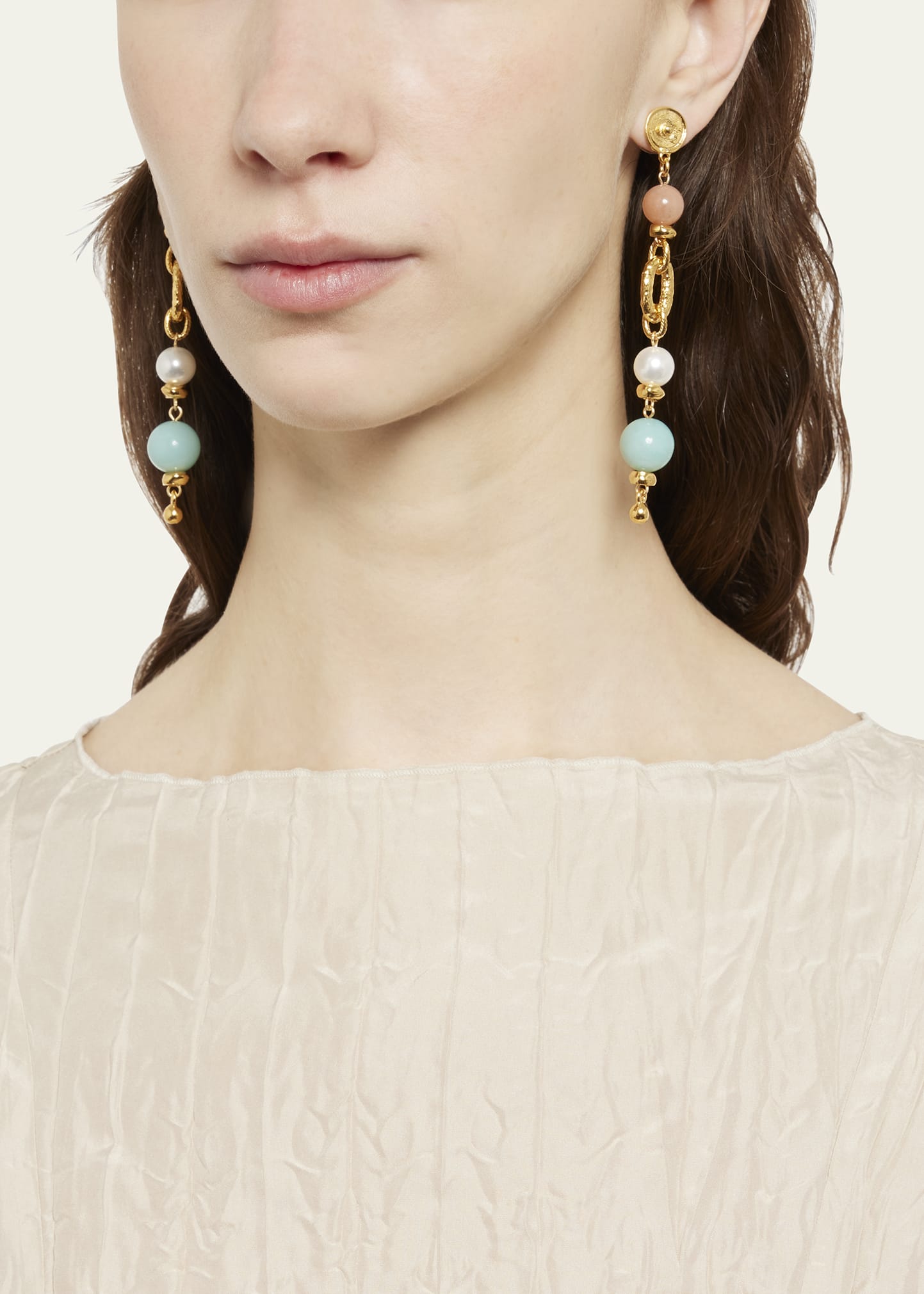 Ben-Amun Pearly, Rose Quartz and Amazonite Earrings