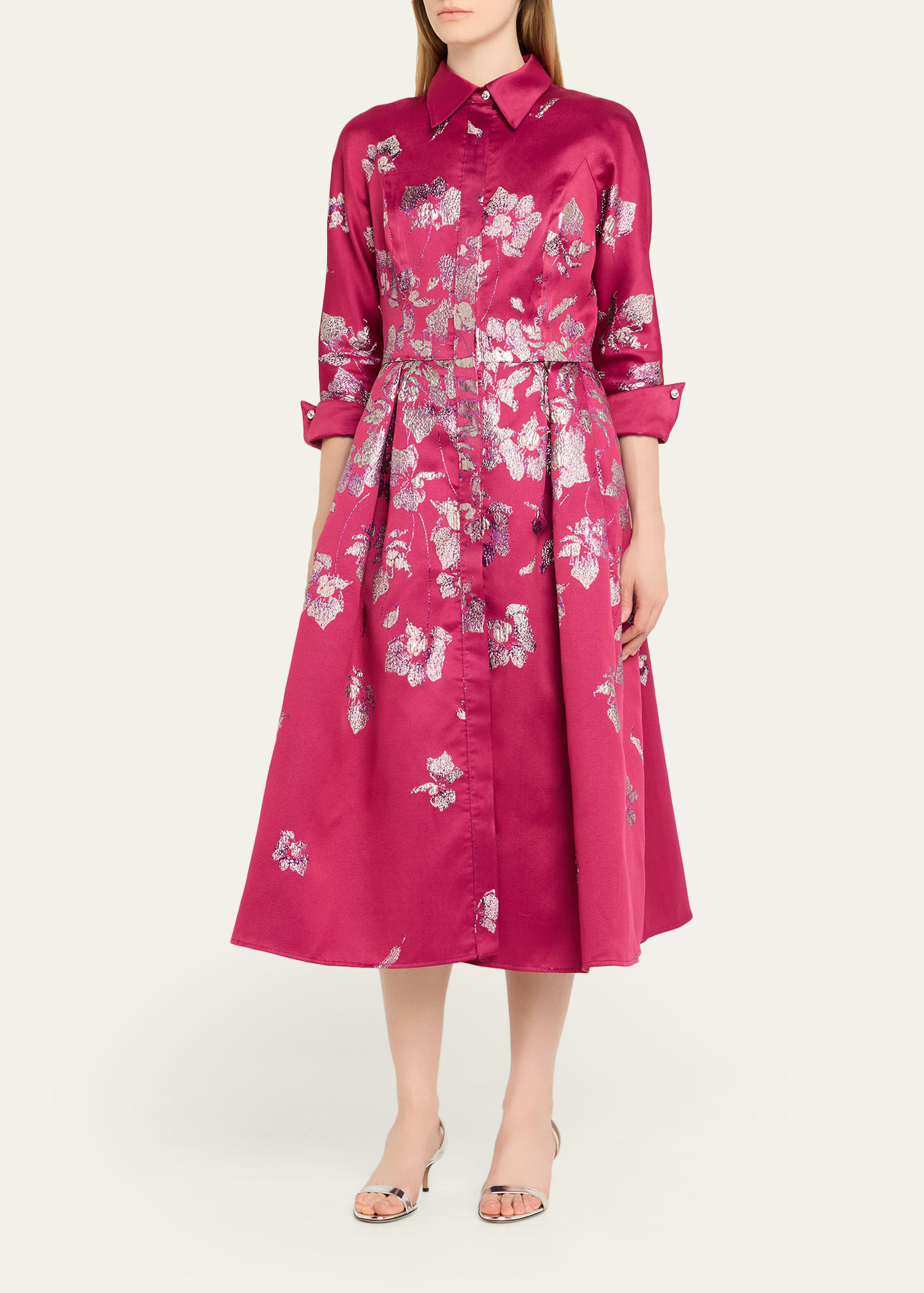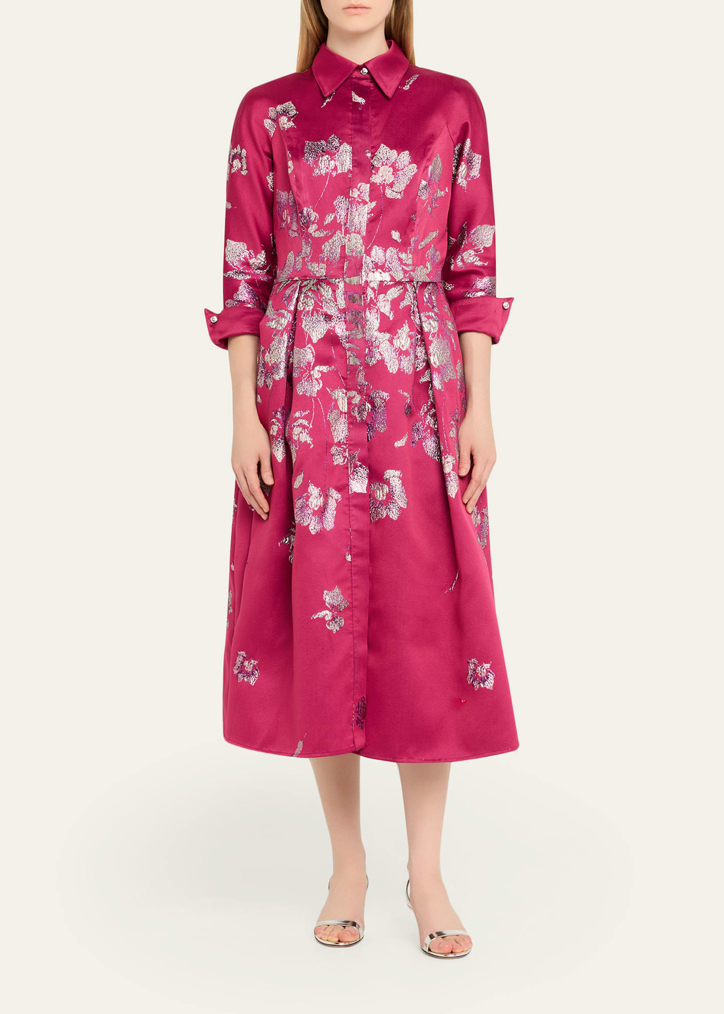 What is the Rickie Freeman For Teri Jon Pleated Metallic Jacquard Midi Shirtdress price?