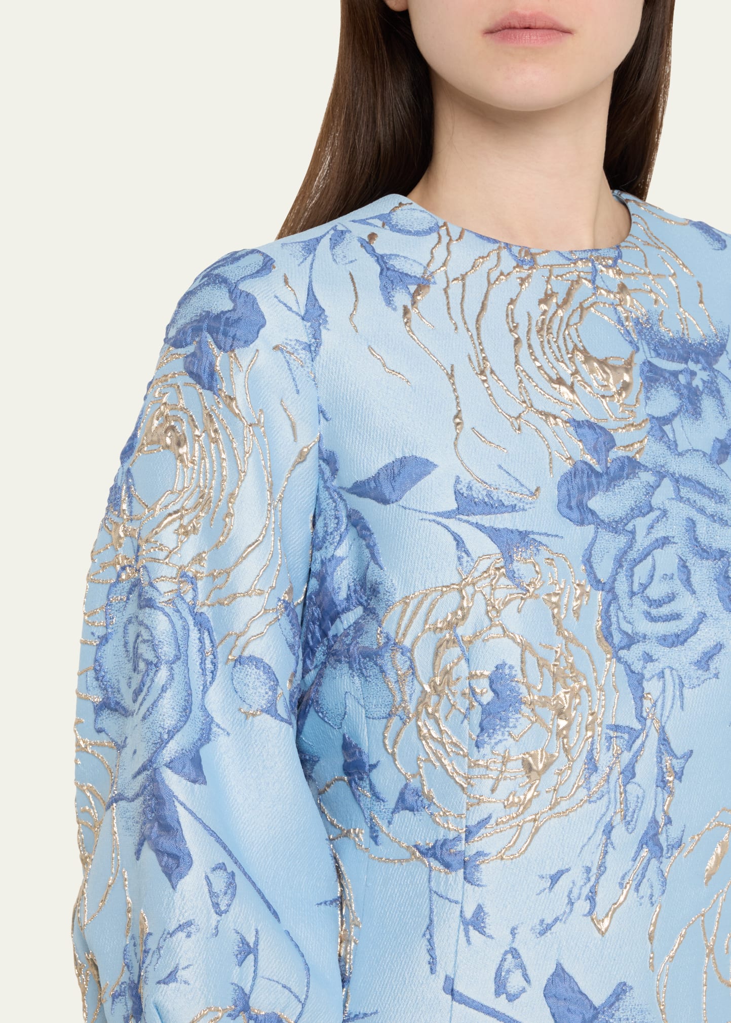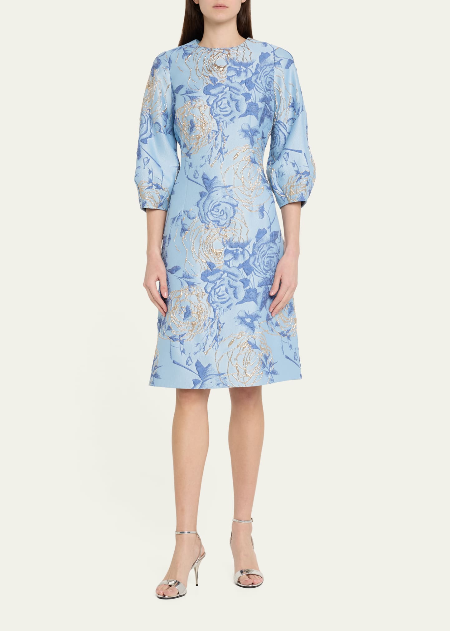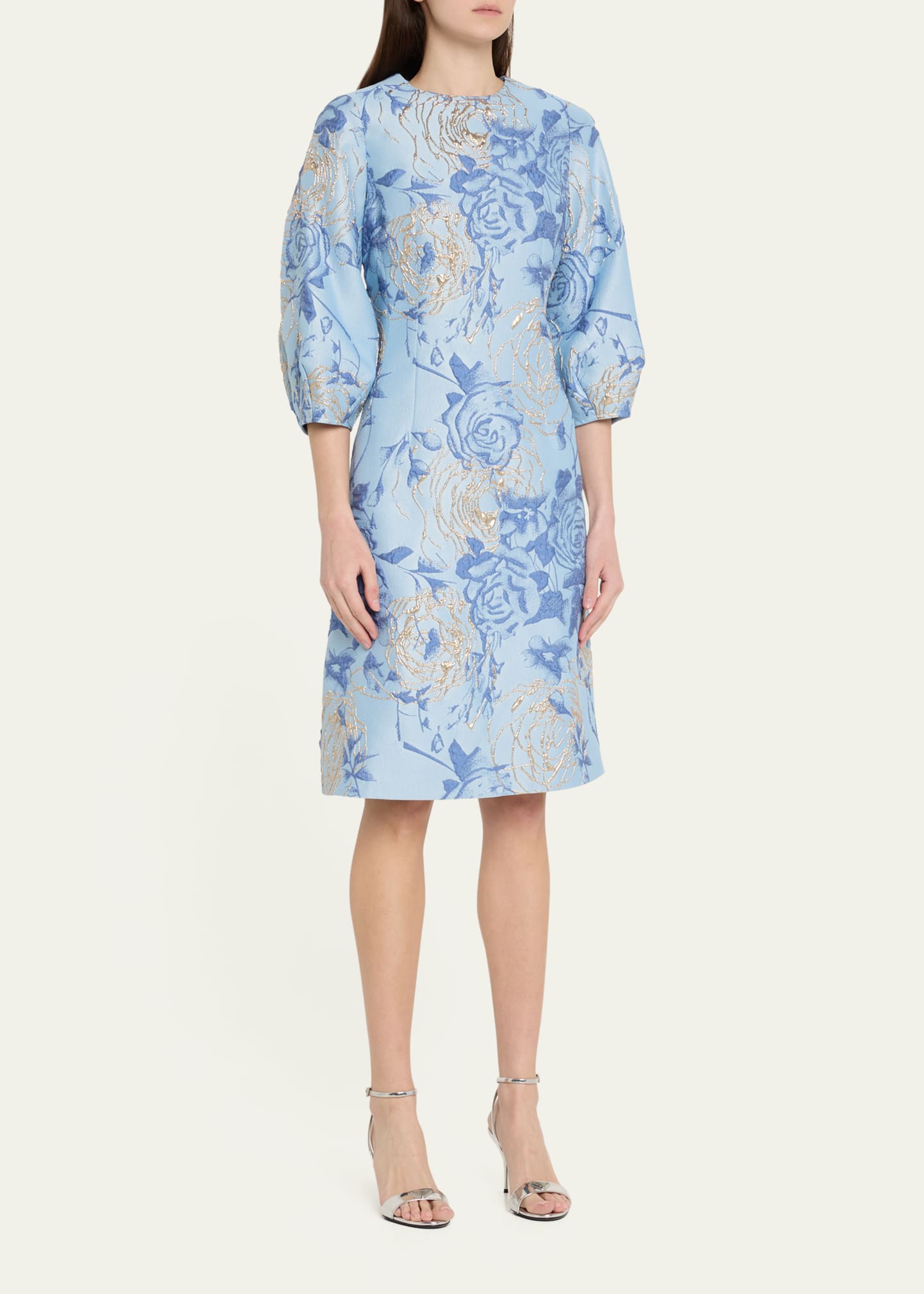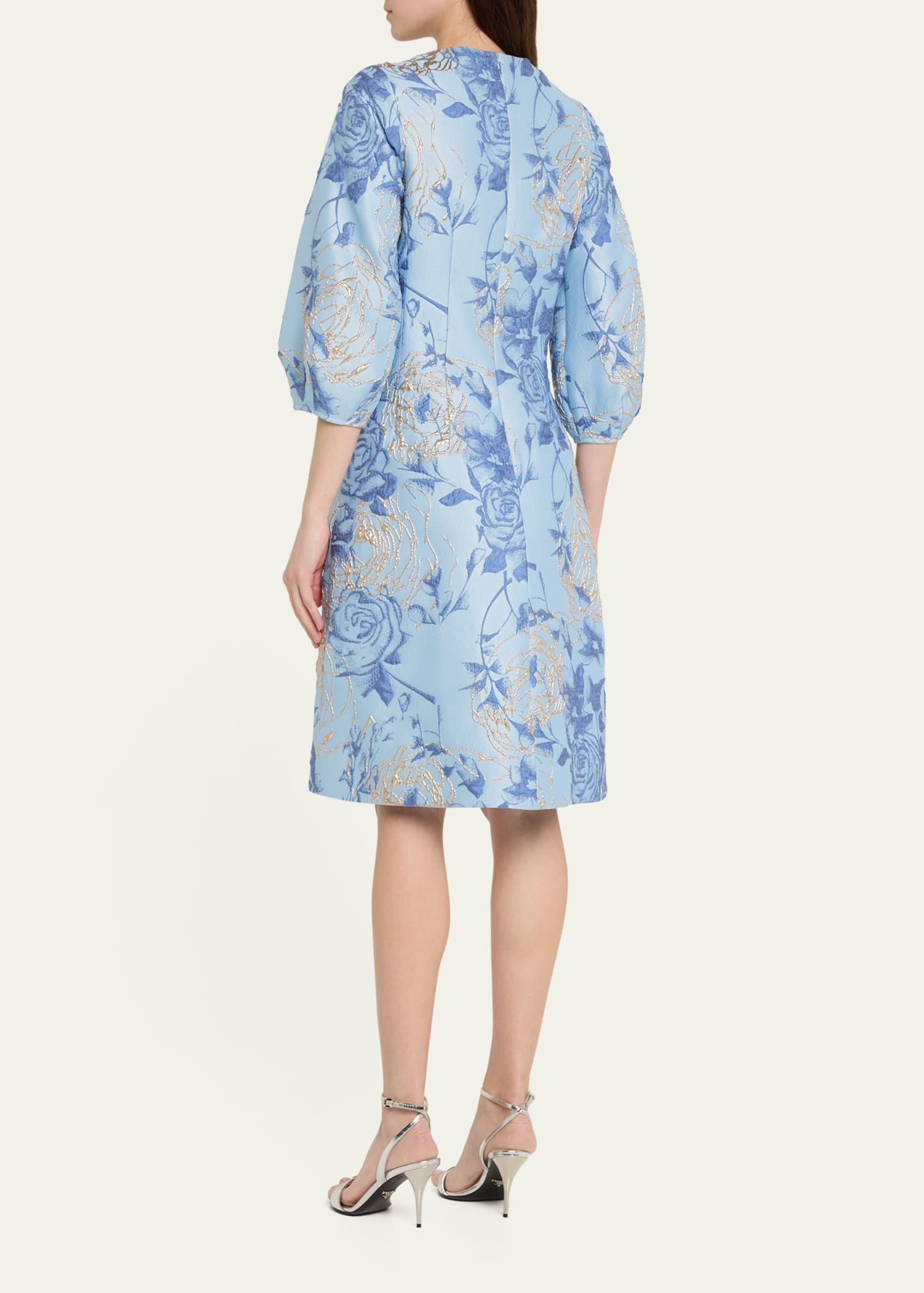 Rickie Freeman for Teri Jon Puff-Sleeve Metallic Floral Jacquard Dress