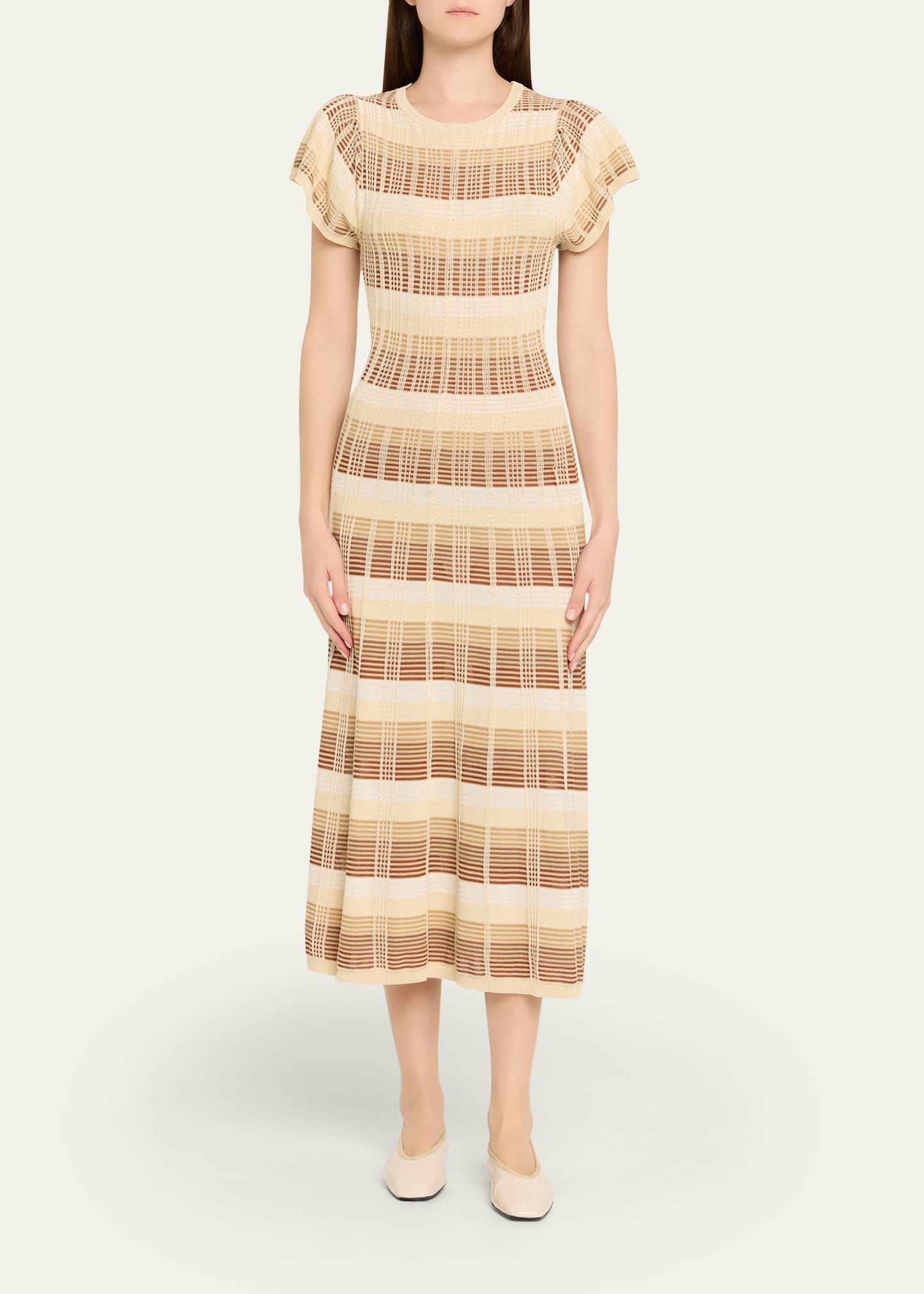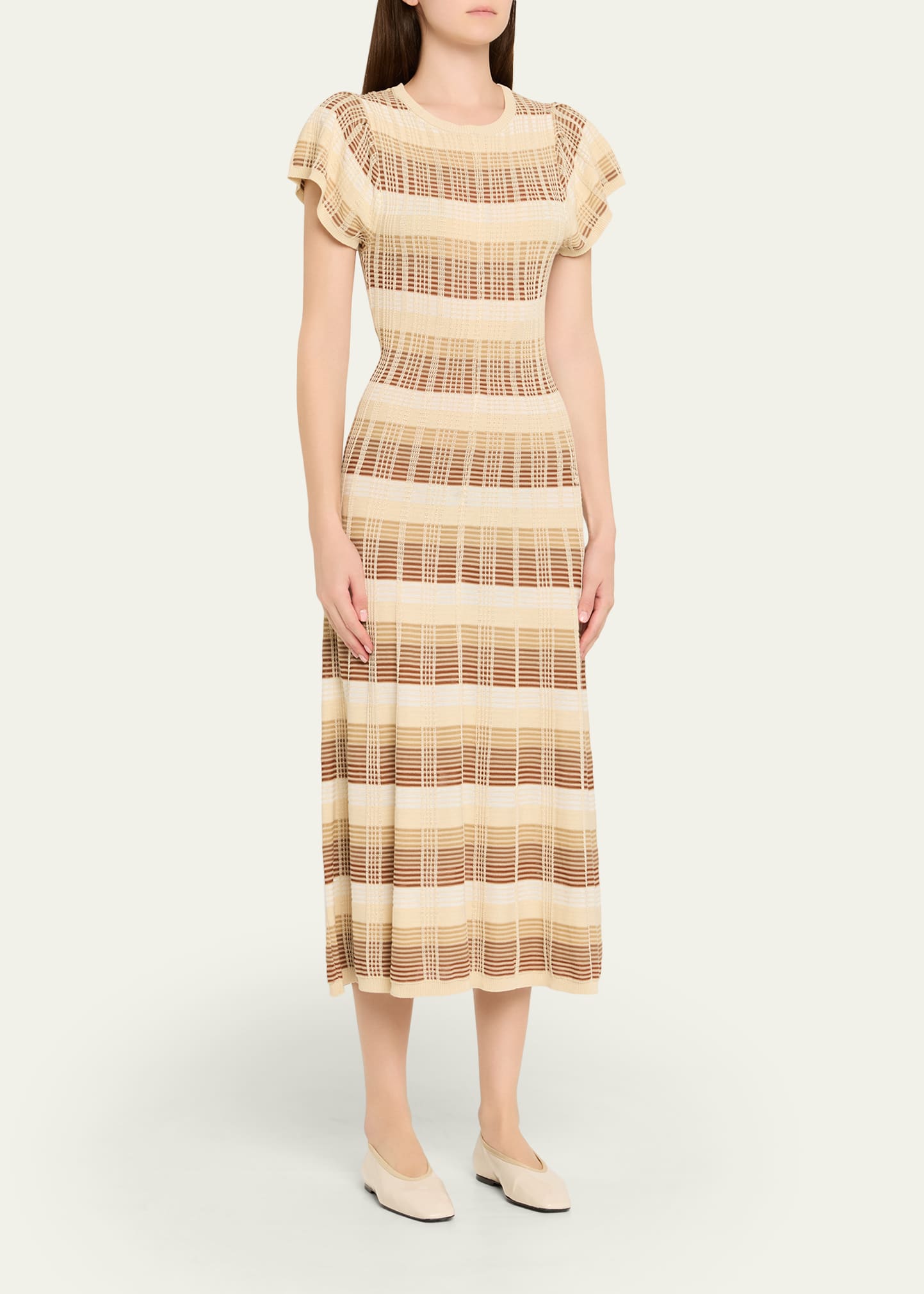 How much does the Ramy Brook Rachel Plaid Knit Flutter-Sleeve Midi Dress cost?